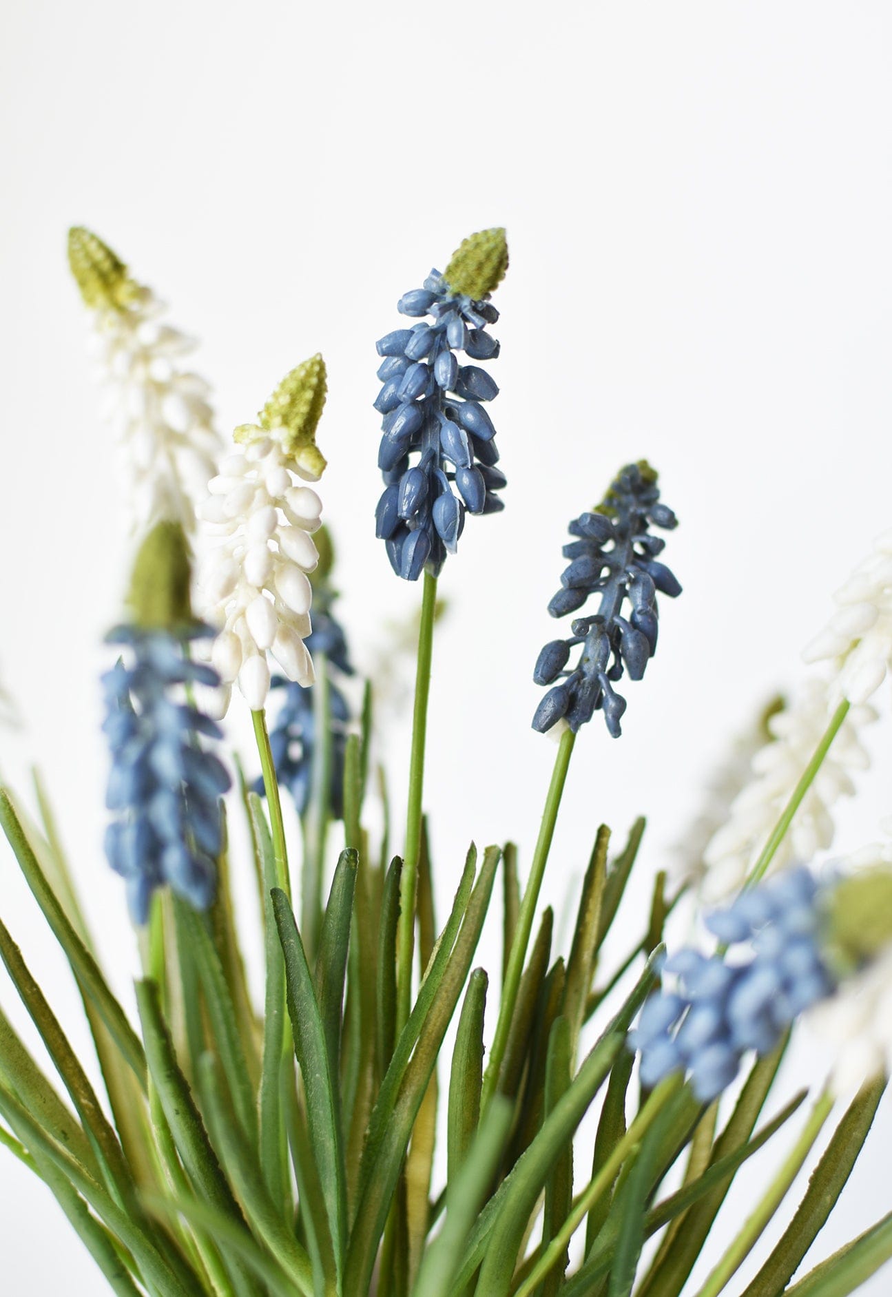 At just over a foot tall, this faux muscari pick works beautifully as an accent stem or bouquet filler — perfect for adding subtle color to arrangements, small vases, terrariums, tabletop clusters, and seasonal displays. The petite size makes it versatile and easy to mix with other stems, florals, and greenery without overwhelming your design.