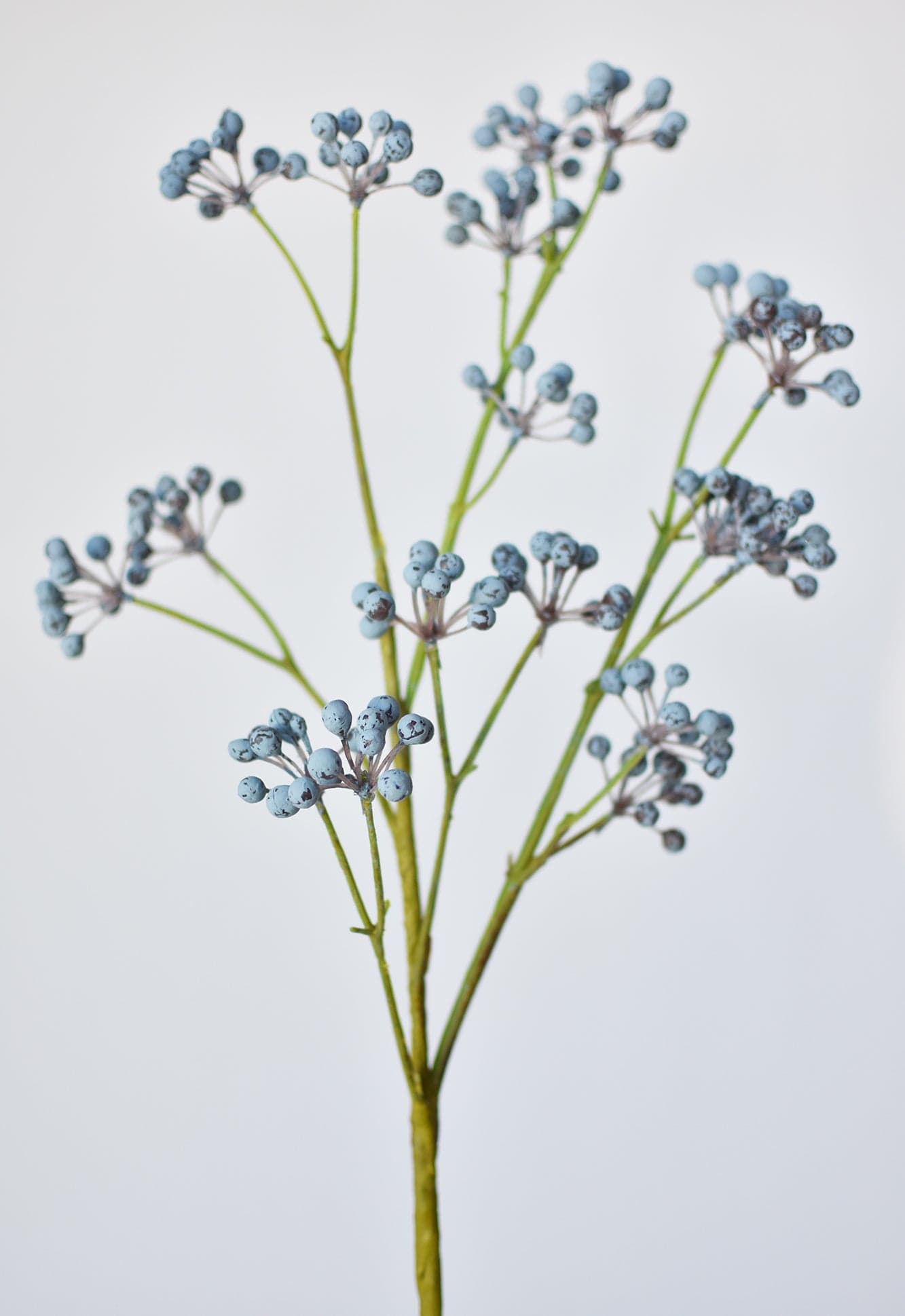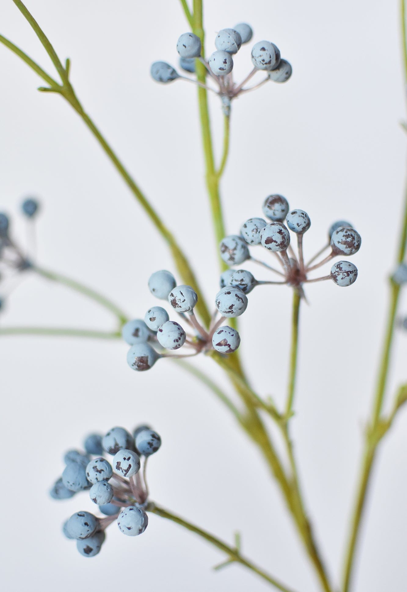 This faux blue berry spray works beautifully on its own as a statement stem or mixed into larger floral compositions, complementing greenery, floral bunches, and seasonal décor styles for year-round beauty.
