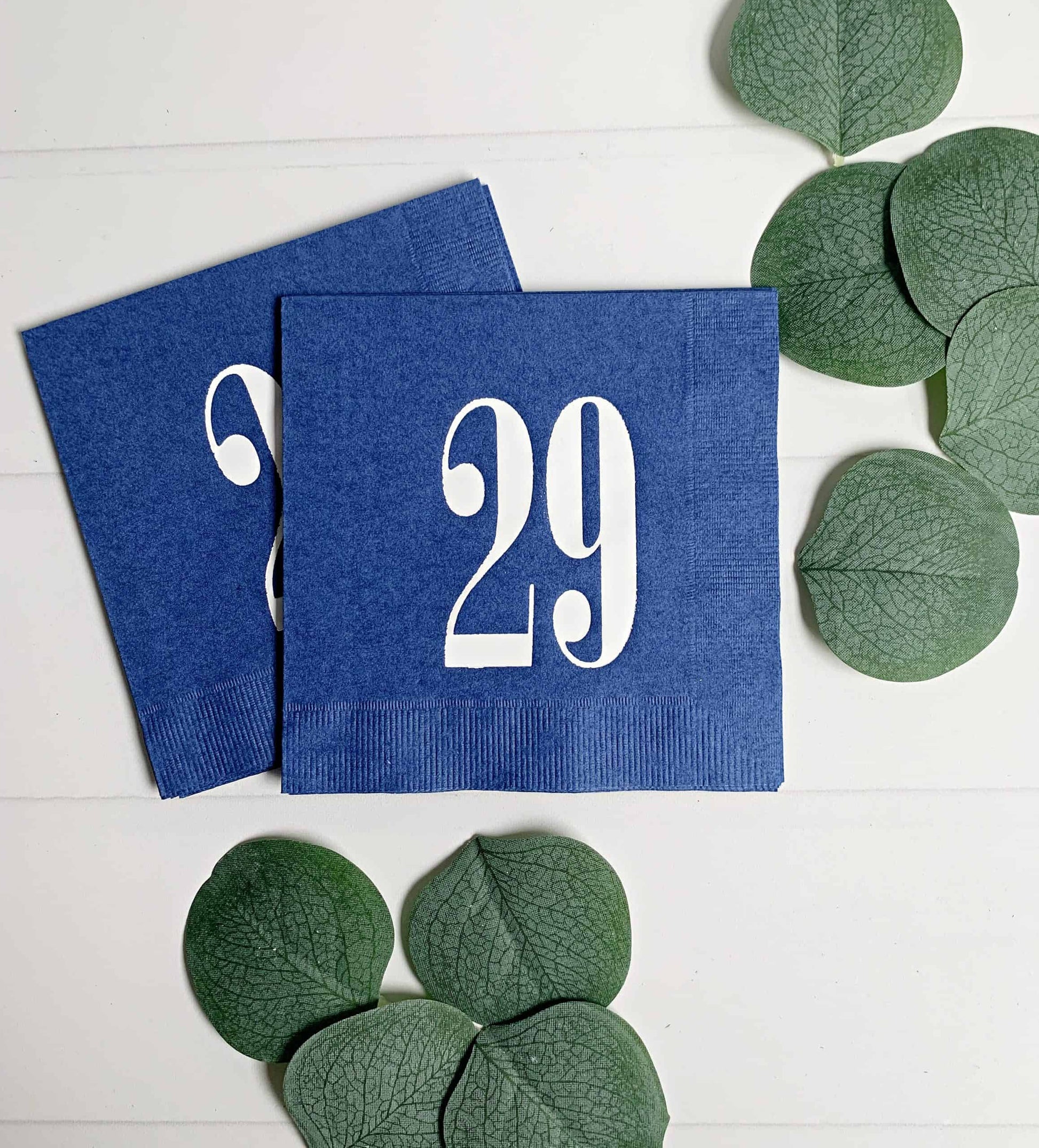 29th Birthday Napkins Navy & White - Set of 16 Cocktail Napkins