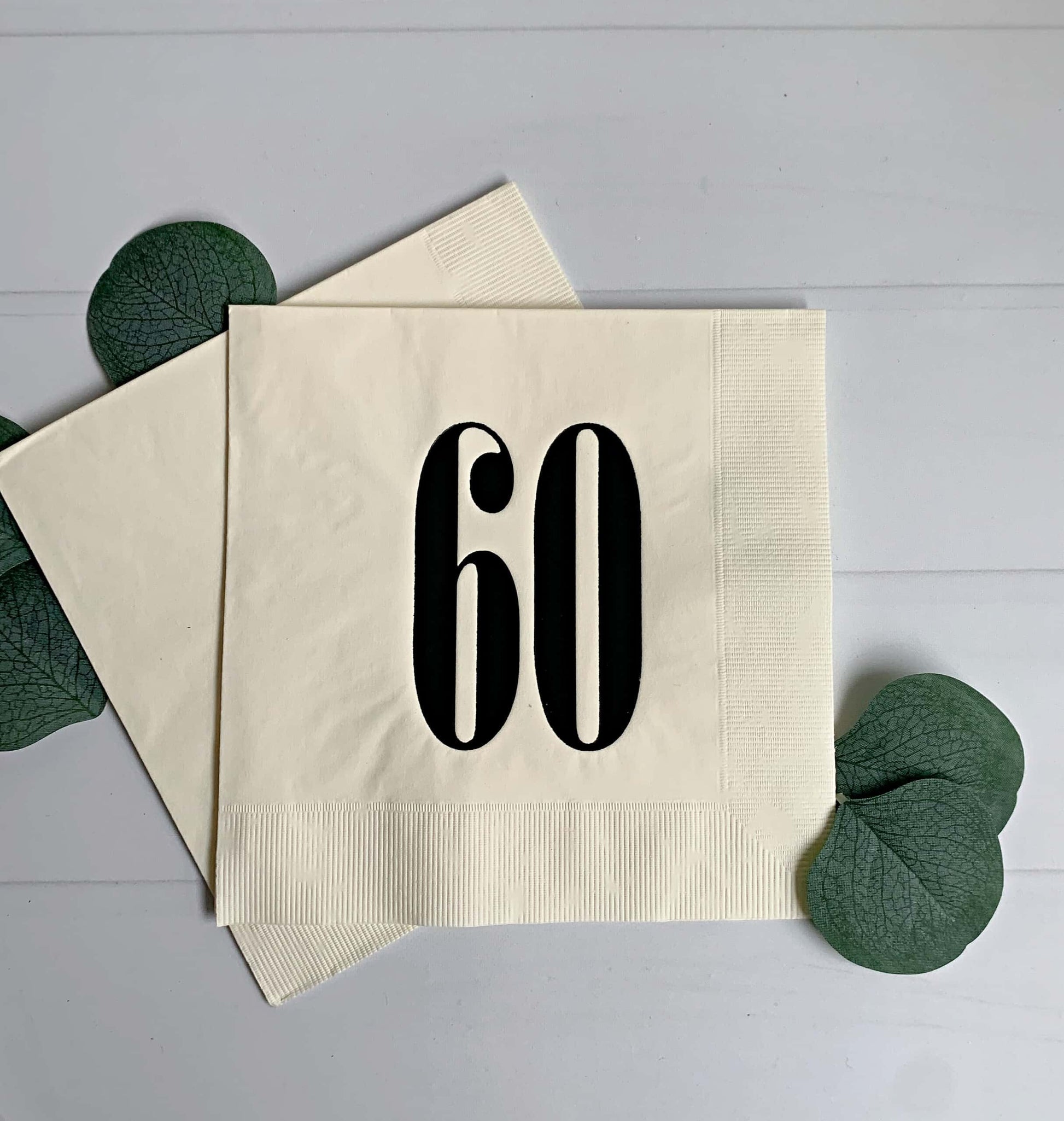 Sharp retro number 60 on an ivory luncheon napkin. Both modern and nostalgic. Perfect for a 60th birthday party for this special milestone. Luncheon-sized birthday or anniversary napkins.