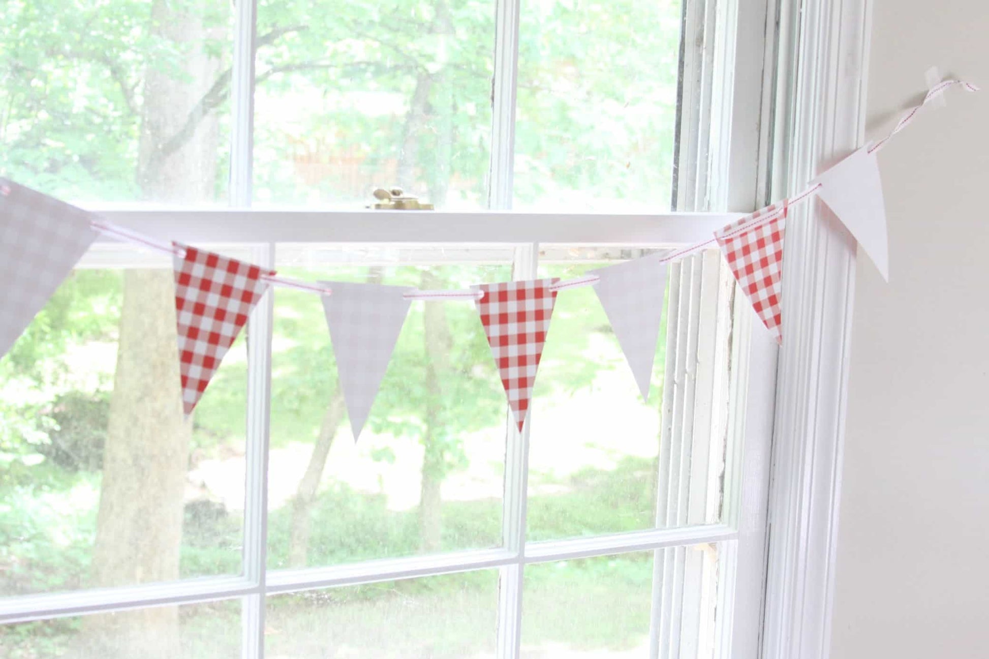 A perfect red and white gingham banner - great for those backyard BBQs, a Baby Q (or baby-que), a Memorial Day picnic or your 4th of July cookout, a family reunion or welcome home party! Use several buntings to decorate trees and fences. Banner is fully reversible - and looks great from all sides.