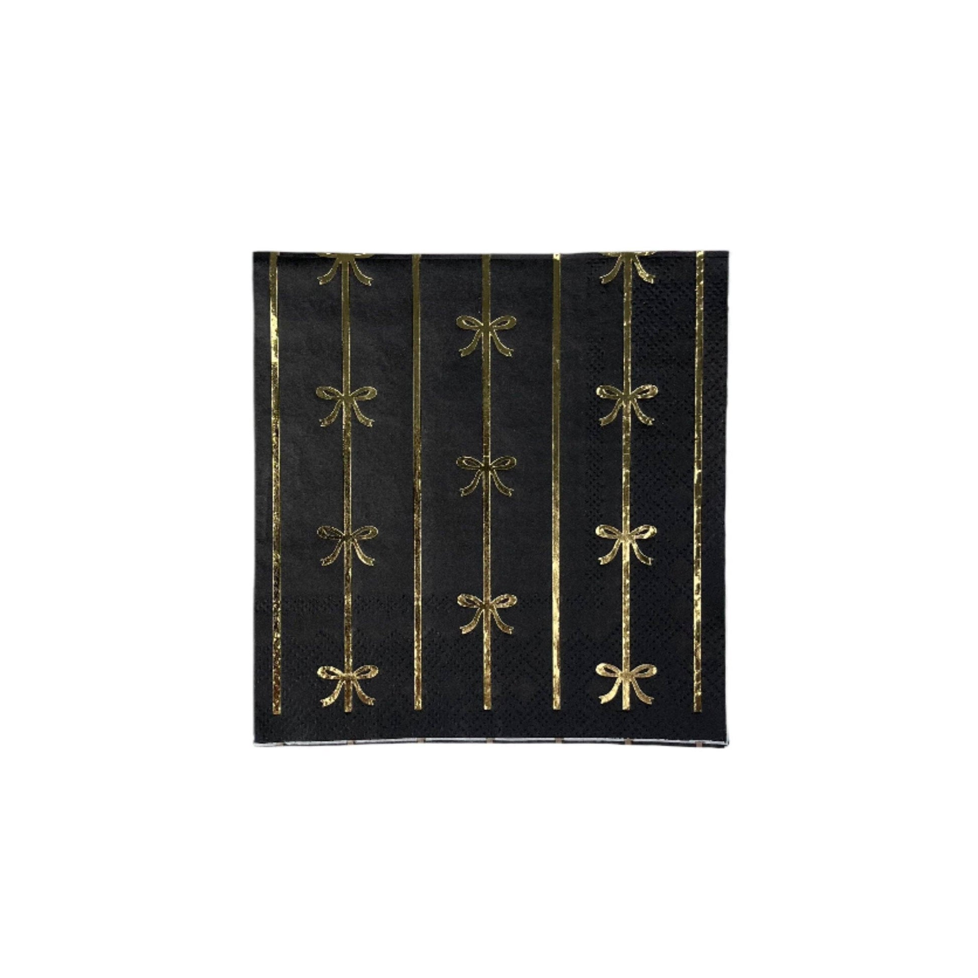 Black and gold cocktail napkins with signature bow designed for New Year's Eve 2025-2026 celebrations, elegant parties, and special occasions. These sophisticated small napkins feature a luxurious gold bow on a chic black background, perfect for creating a glamorous party atmosphere.