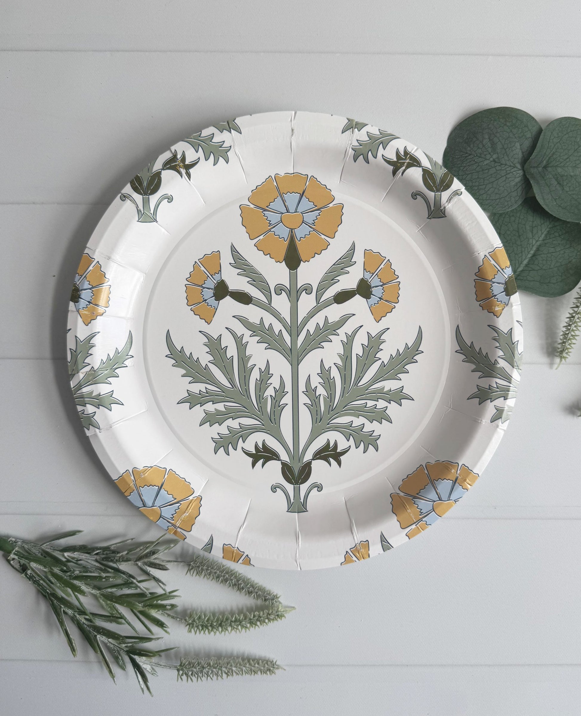 Bold Amber Floral Block Print Dinner Plates - Premium Paper Plates