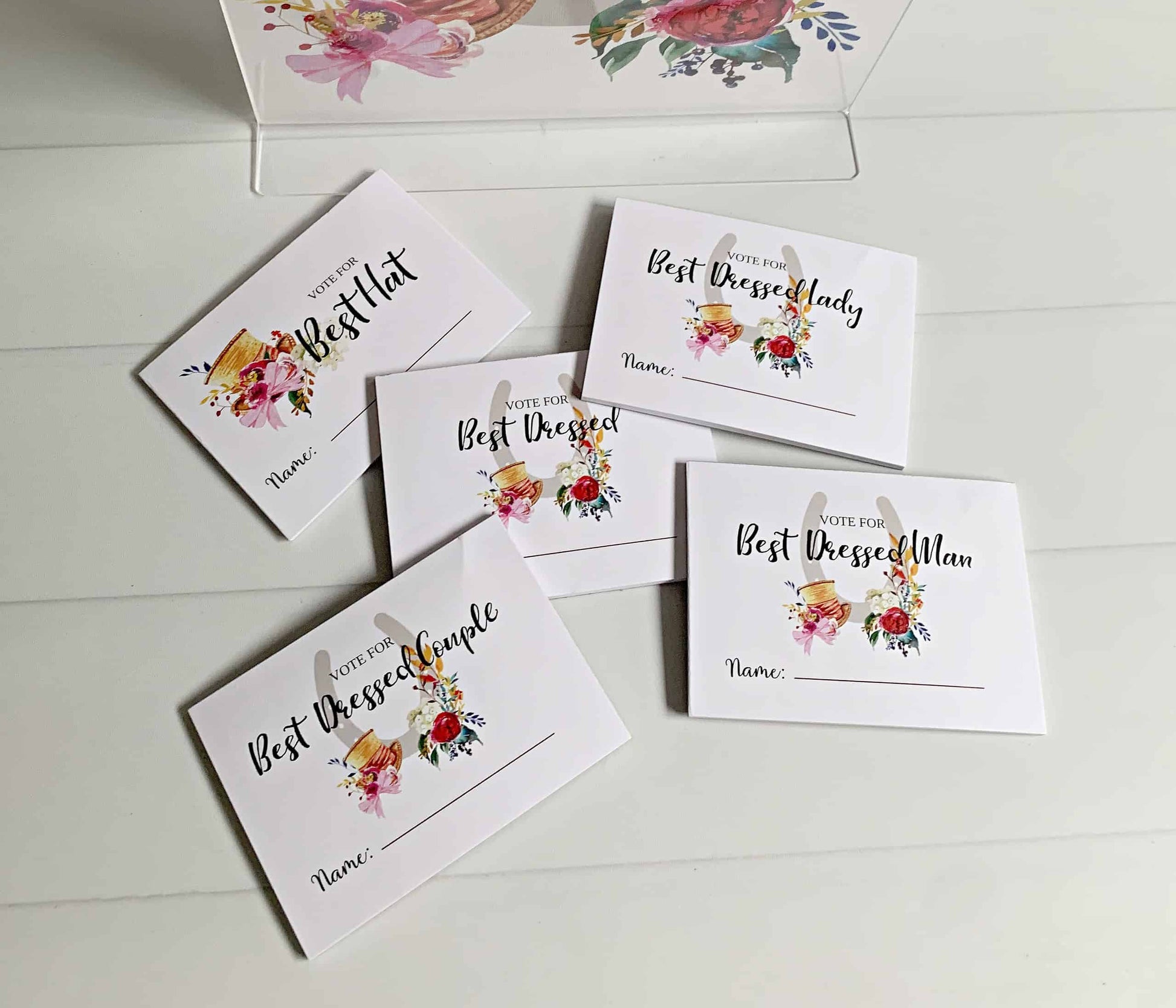 Create a fun and interactive experience at your Kentucky Derby party with EnFete's Derby "Vote for Best Dressed Couple" Printed Voting Cards Pad (each voting pad is a separate item, select the ones you want are your party!)
