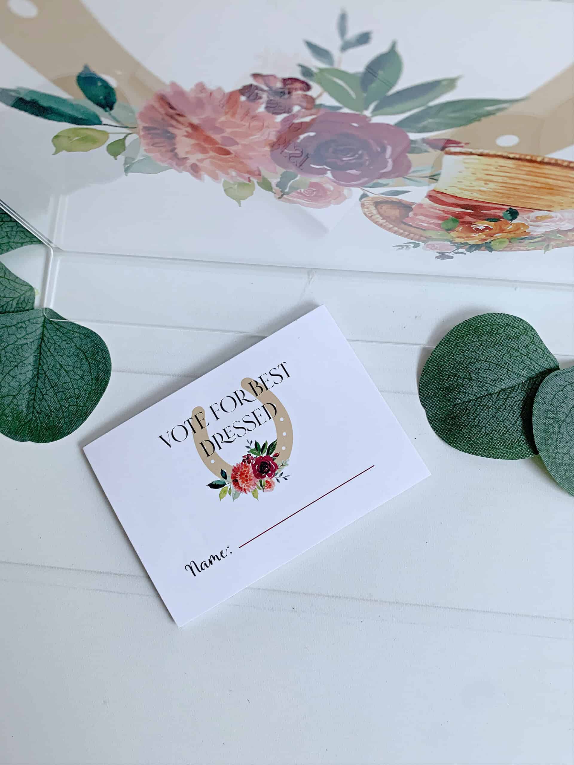 Create a fun and interactive experience at your Kentucky Derby party with EnFete's Derby "Vote for Best Dressed" Voting Cards Pad. The sign, measuring 8.5 x 11 inches and printed on durable cardstock, adds a touch of elegance to your party decor while encouraging guests to participate in the festivities.
