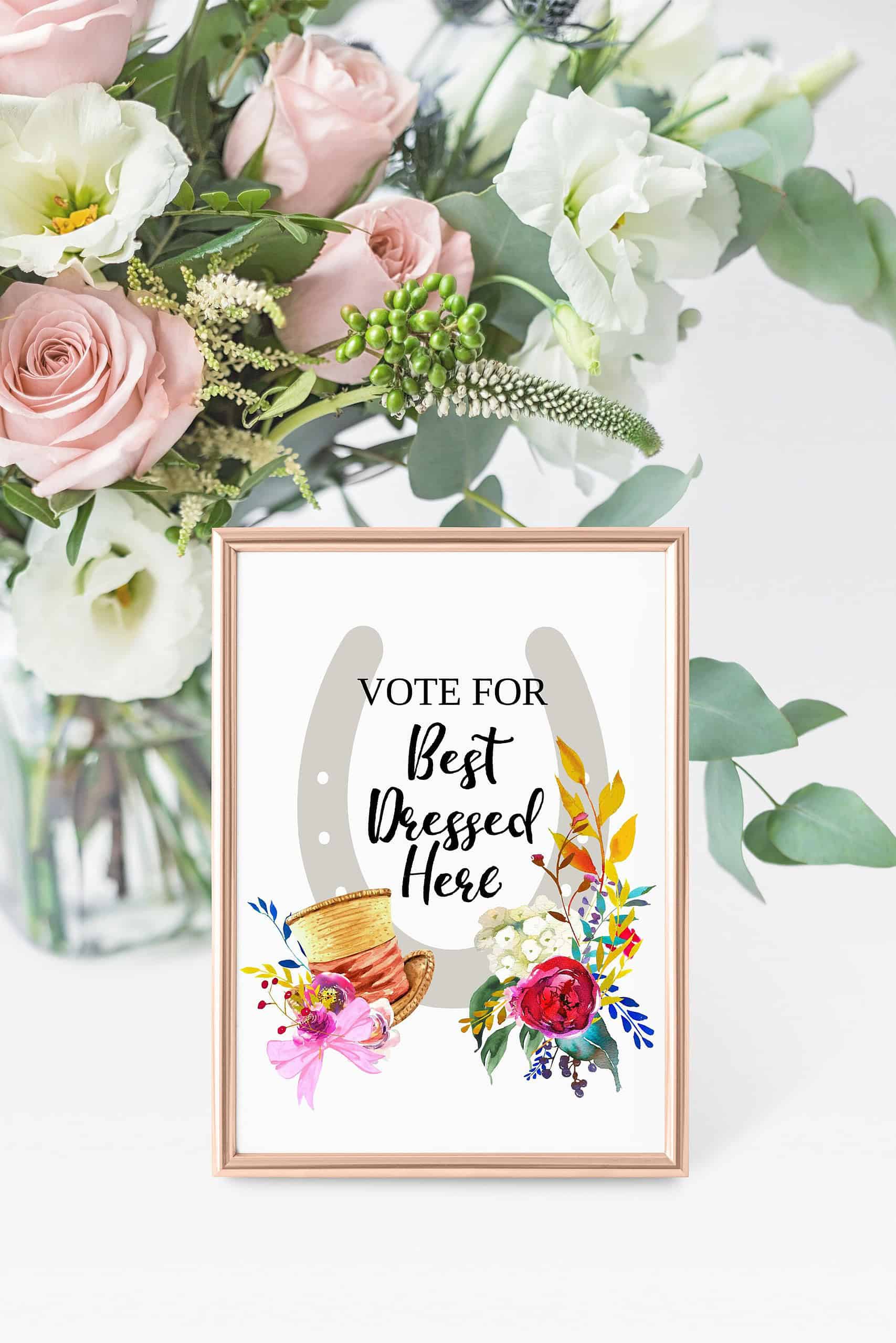 Create a fun and interactive experience at your Kentucky Derby party with EnFete's Derby "Vote for Best Here " Printed Sign.