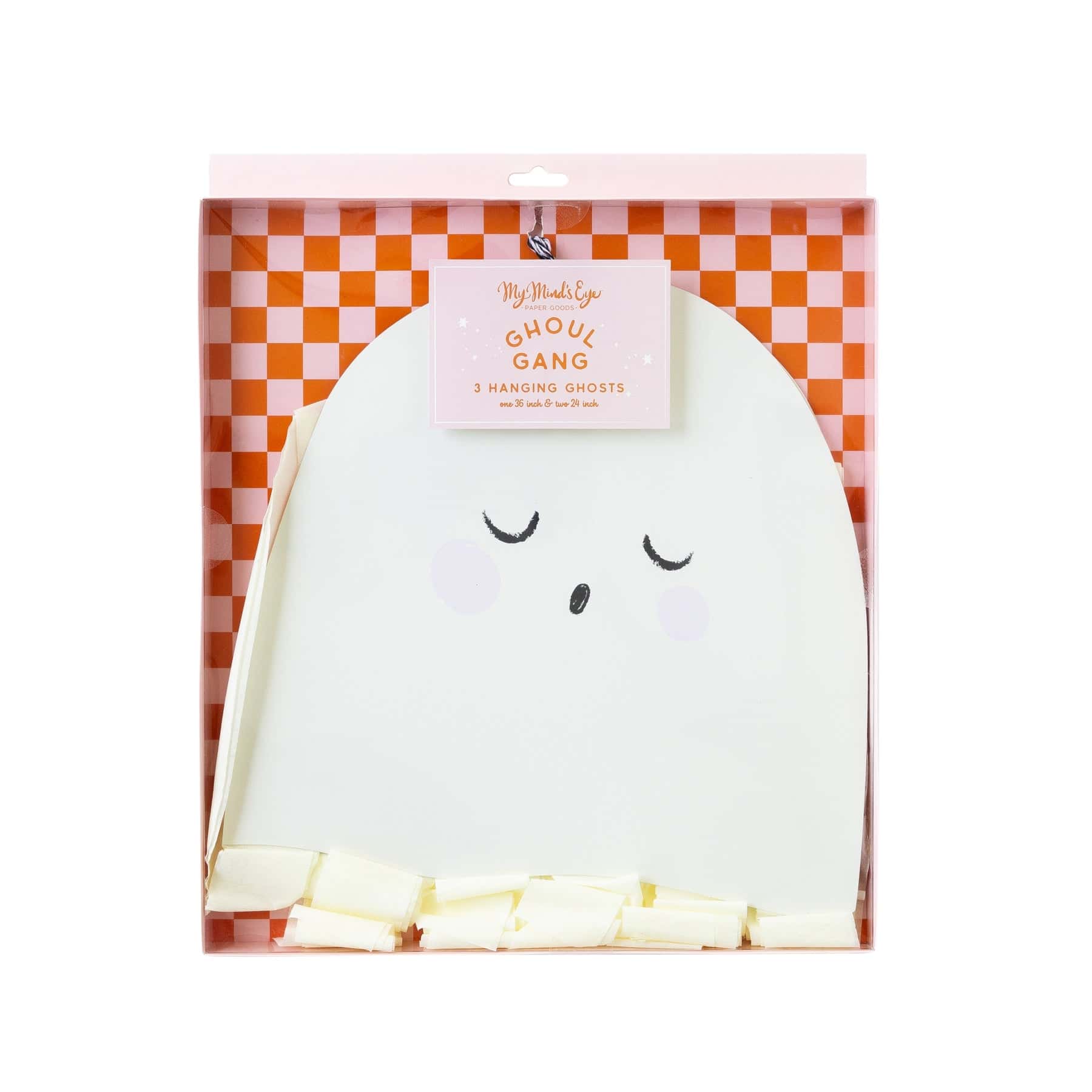 Get ready to spook up your Halloween party with our set of hanging ghosts! Each pack includes three unique and frightfully adorable ghosts that are sure to add the perfect amount of spookiness to your festivities. These ghostly decorations feature crepe paper streamers, creating an extra eerie and delightful detail to enhance your haunted ambiance.