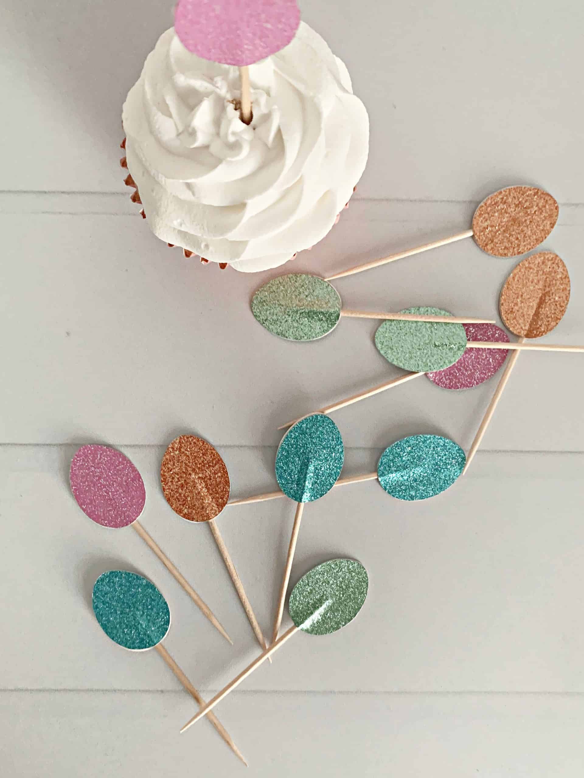 Simple, sweet, little Easter egg cupcake toppers - perfect for all your spring celebrations. Beautiful glittered pastel eggs are perfect to top sweets and appetizers.