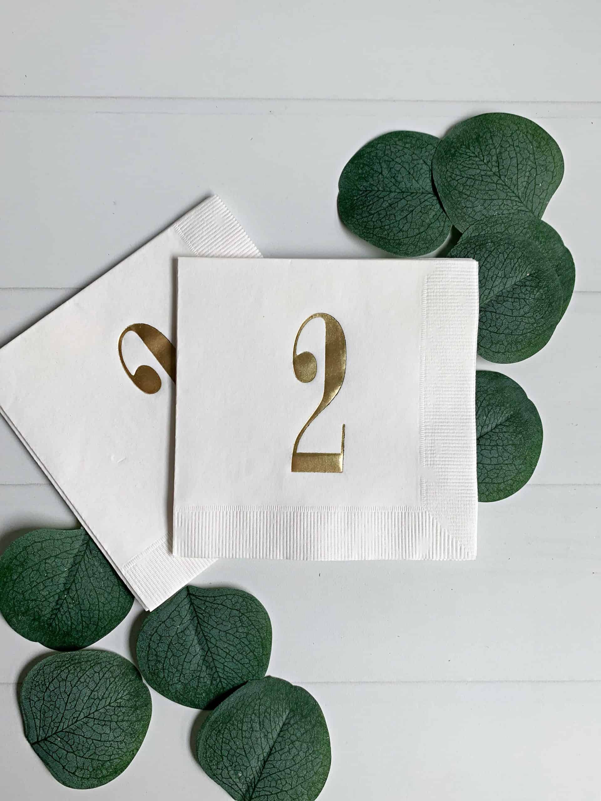 Each set includes 16 cocktail-sized napkins featuring a beautiful foiled gold '2' design on a crisp white background. The neutral muted shades make them suitable for both boys and girls, ensuring they fit seamlessly into your desired party theme.