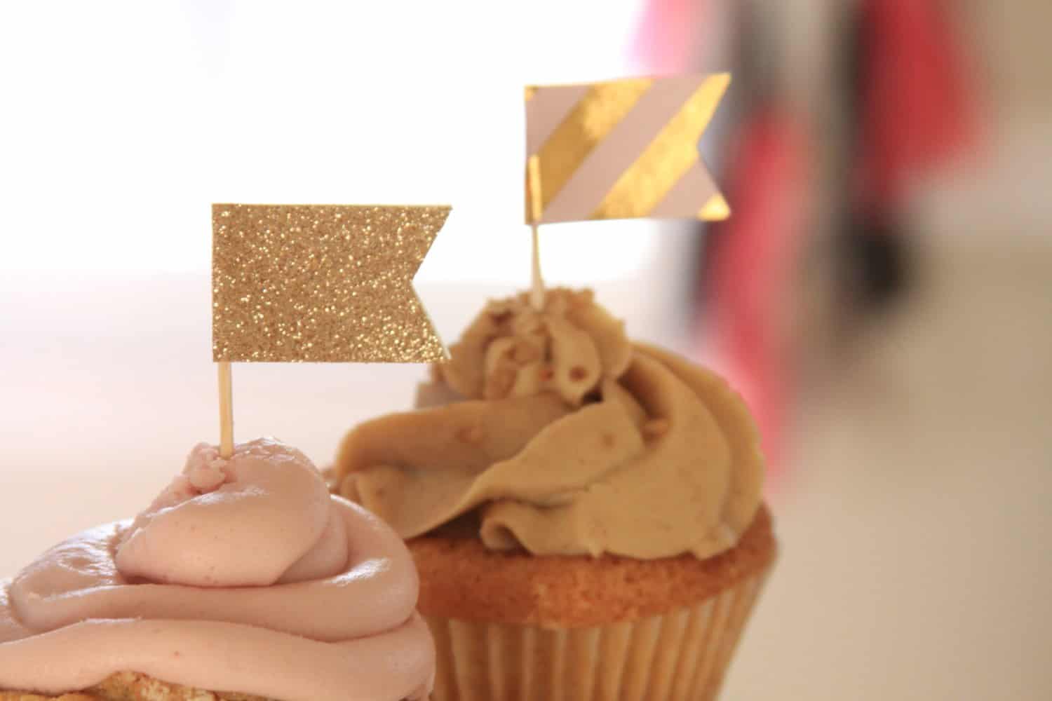 Elegant gold glitter cupcake toppers - perfect for appetizers and snacks too.