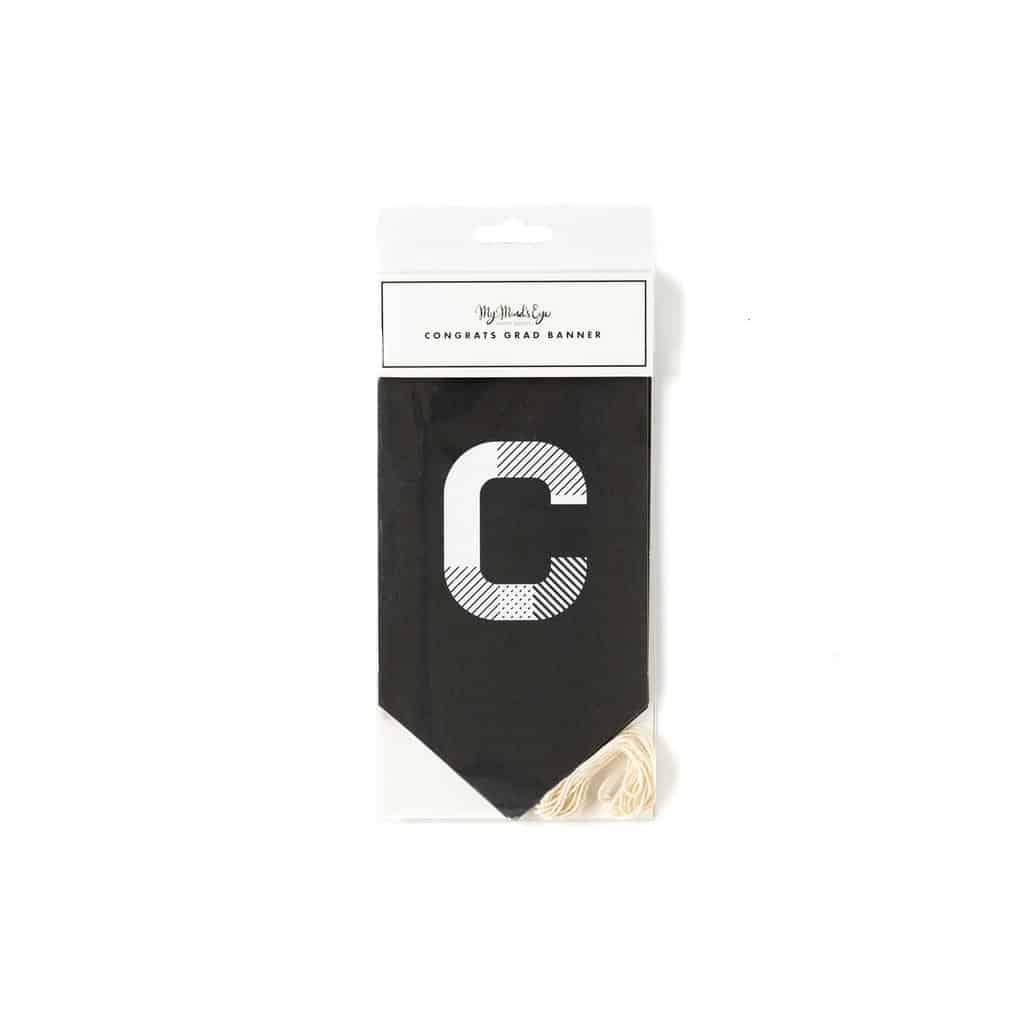 Congratulate your graduate with this pennant word banner. This banner includes the letters needed to complete the phrase "Congrats Grad" in a neutral black and white, so it will coordinate with your graduation party decor. Add it to our graduation party fans and graduation hat banner and tassel banner to set the stage for an elevated and stylish graduation soiree!