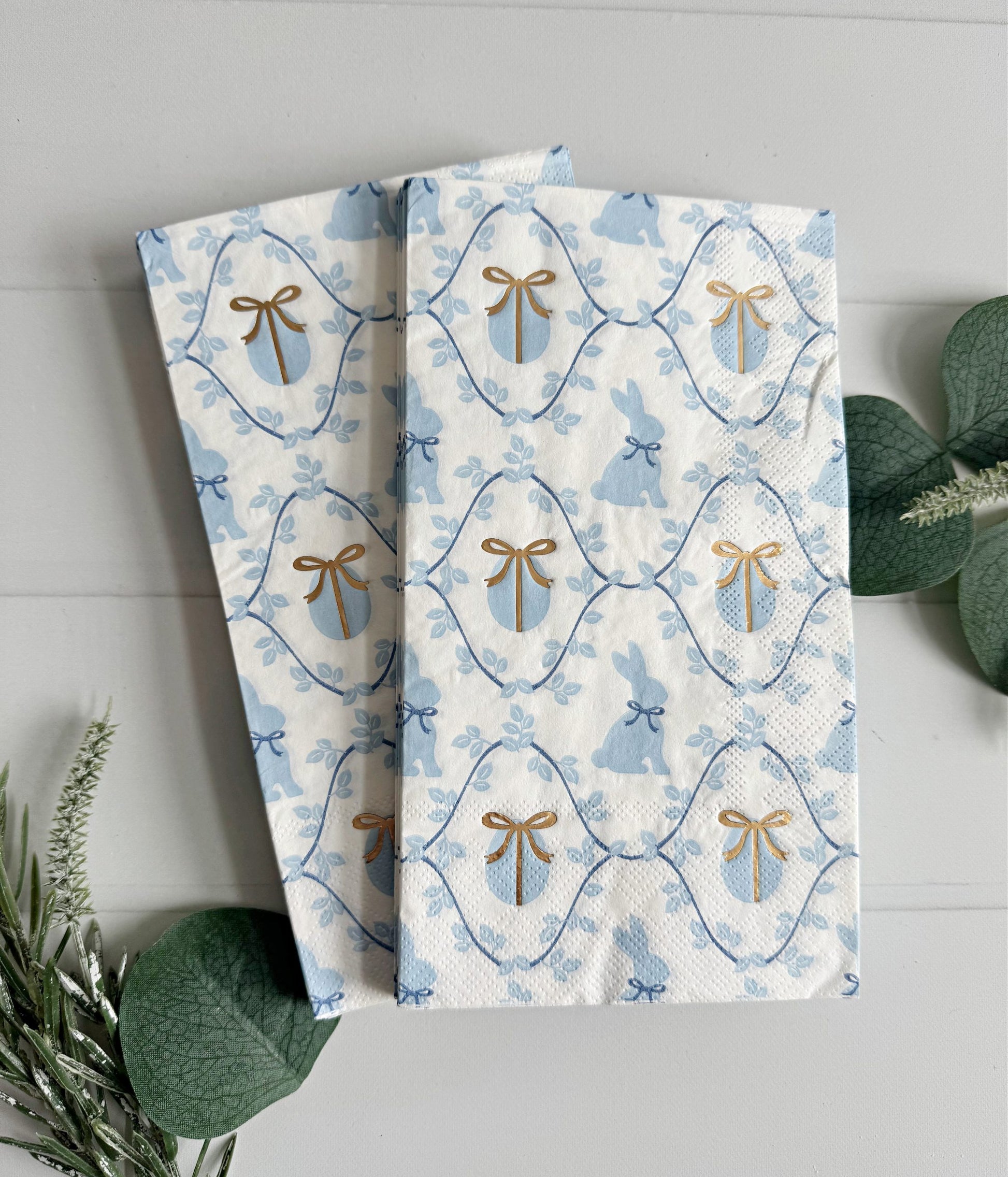 Easter Bunny Paper Dinner Napkins - Blue Eggs & Gold Bow Guest Towels Set of 20