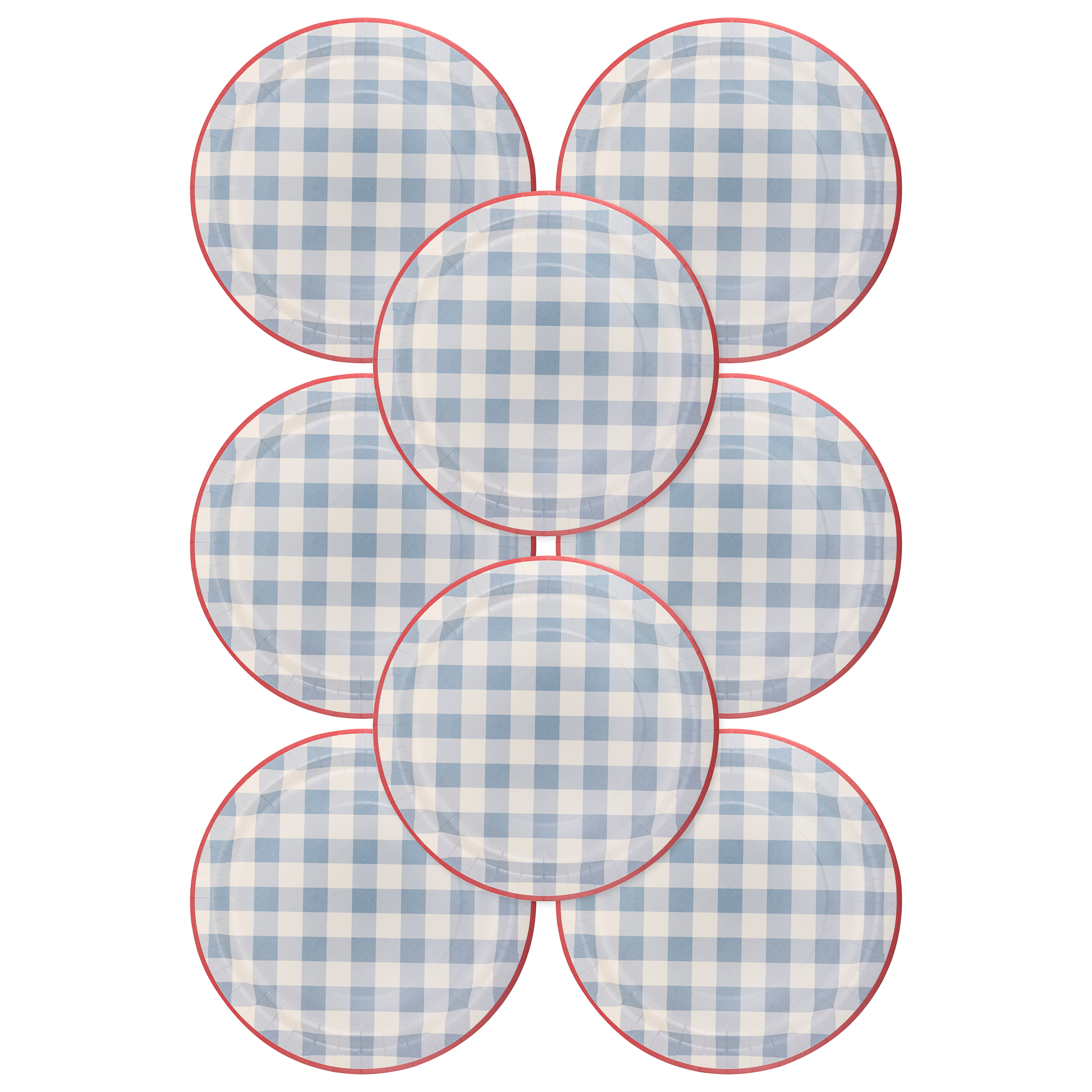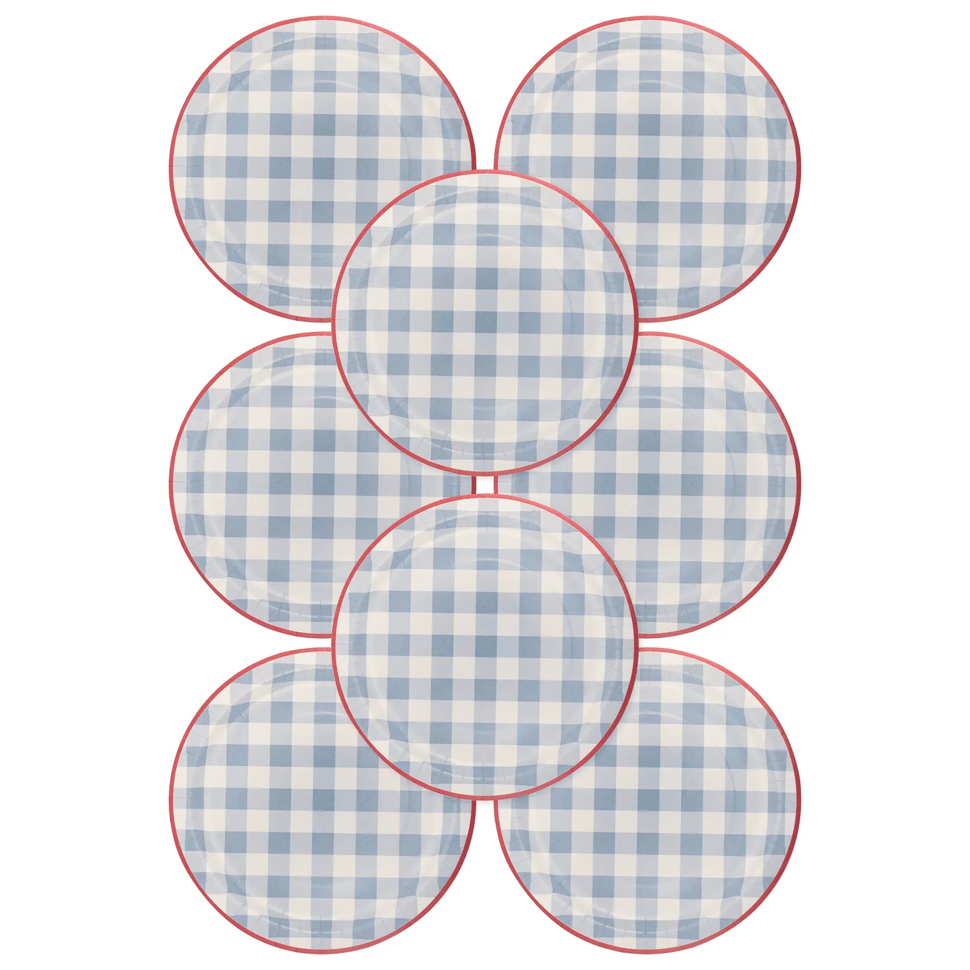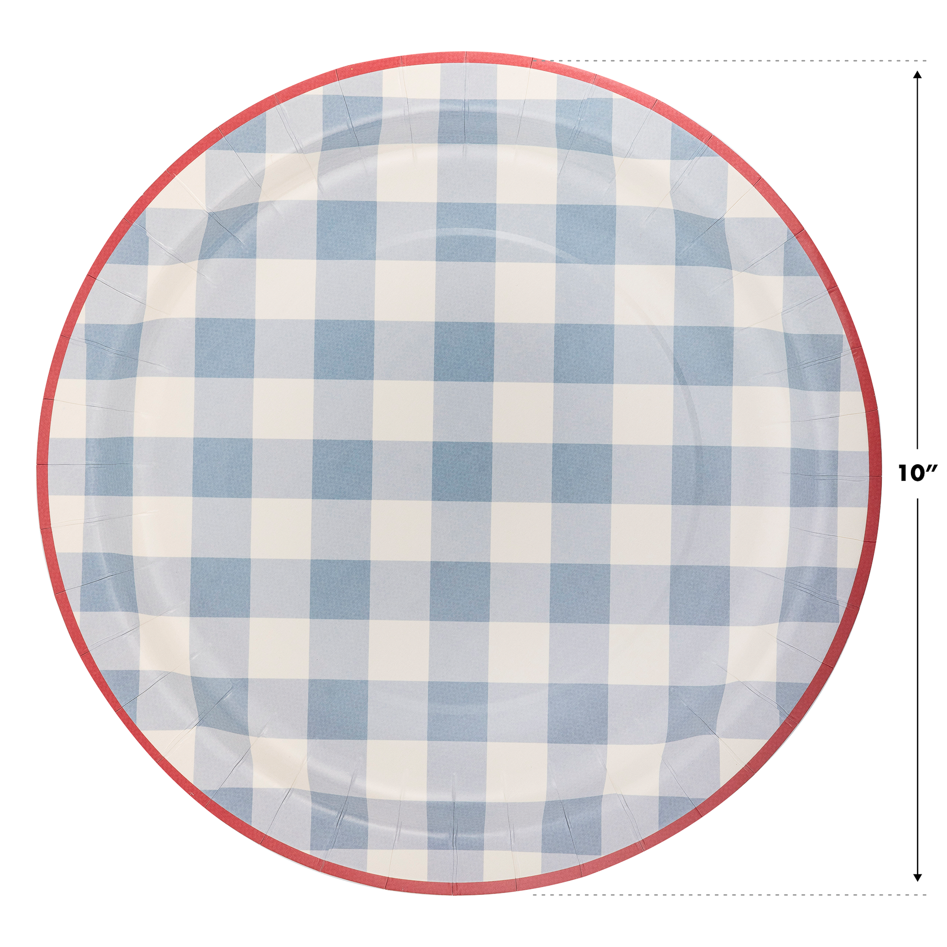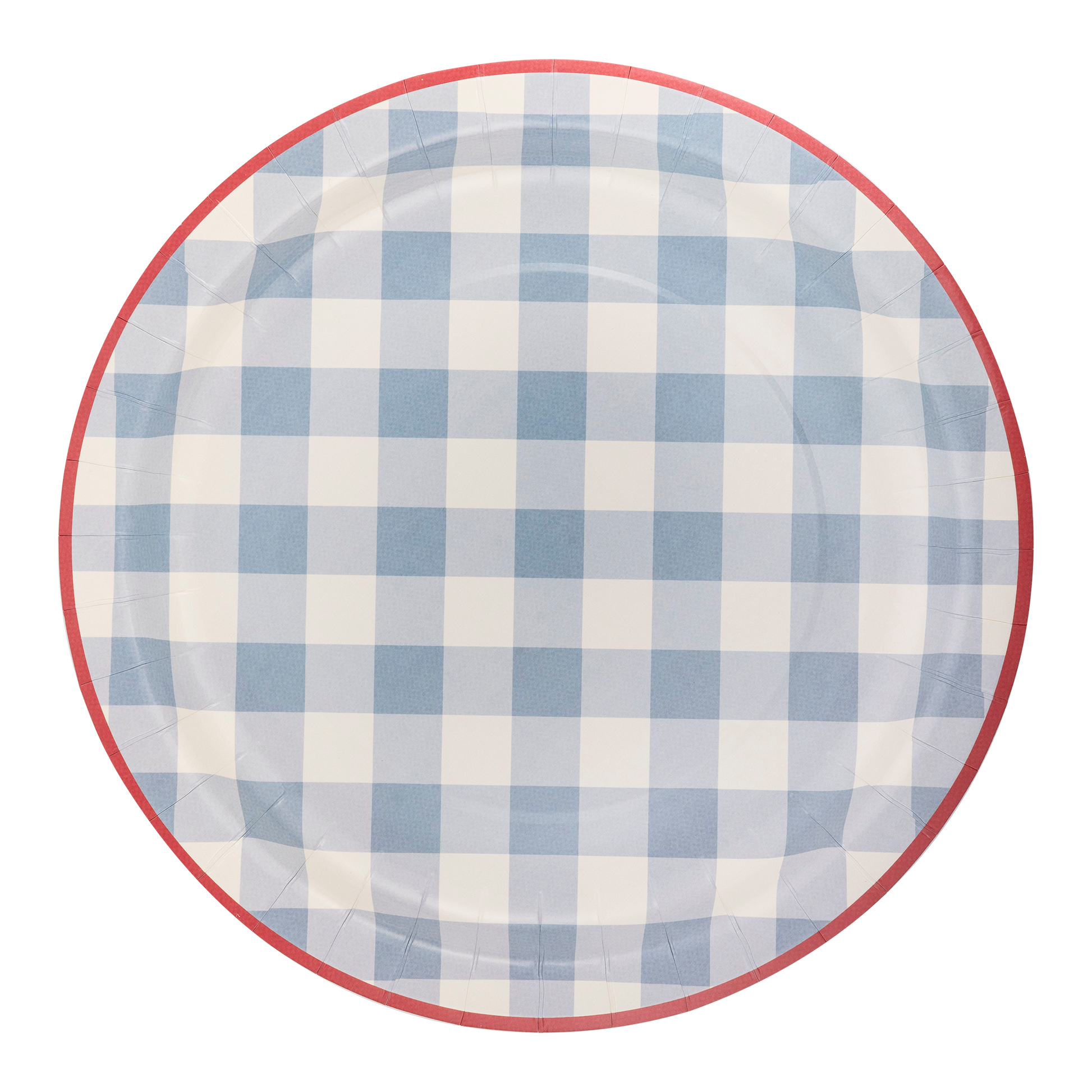 Elevate your backyard barbecue with our Blue Gingham Paper Plates! These plates feature a classic and patriotic blue plaid with red edged design, adding flair to any outdoor event. Say goodbye to boring paper plates and embrace the red, white, and blue for a festive celebration! Perfect for coordinating with our Baby Que and I Do BBQ napkins and party items, these plates will complement your barbecue theme and create a cohesive and stylish table setting. Enjoy your favorite barbecue dishes in style with these vibrant and festive Blue Gingham Paper Plates!