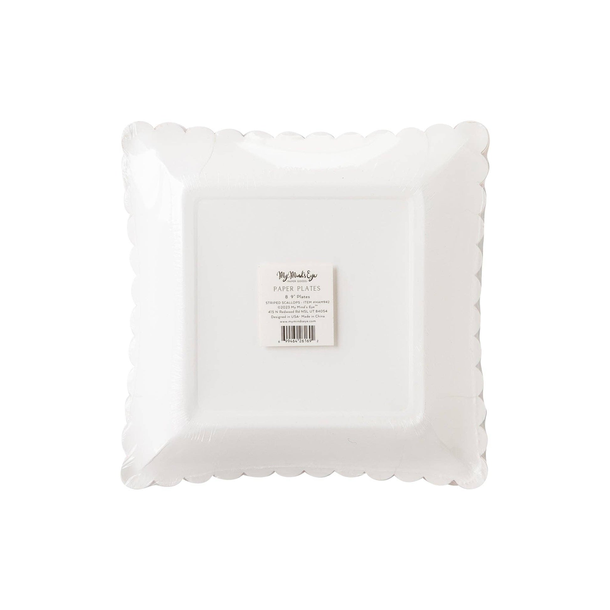 9" Square Scalloped Paper Plates: Each plate boasts a square shape with scalloped edges, providing a unique and visually appealing design that stands out on any table setting. The 9-inch size offers ample space for your delicious culinary creations.
