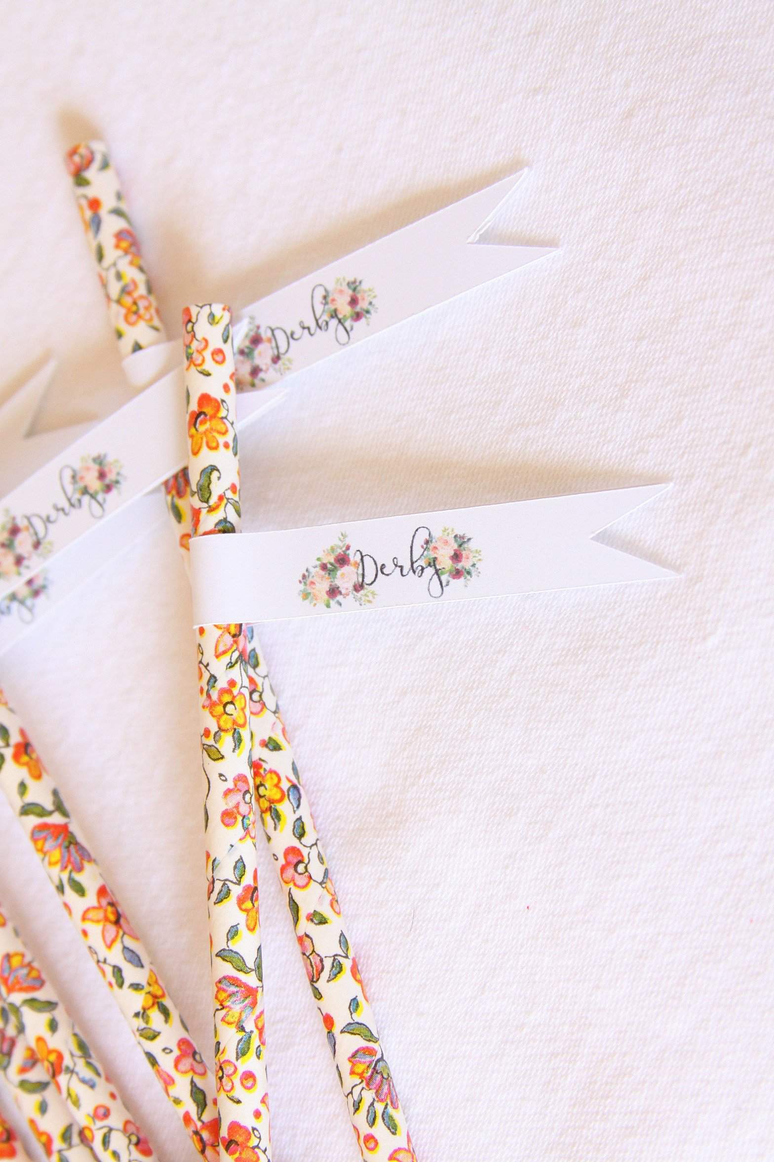 These super cute floral Kentucky Derby Party drink straws are sure to cause a stir at your next party. Perfect to display on the bar for your next equestrian themed event. The perfect Derby themed stir sticks to make every cocktail fun - especially all those mint juleps on Derby Day!