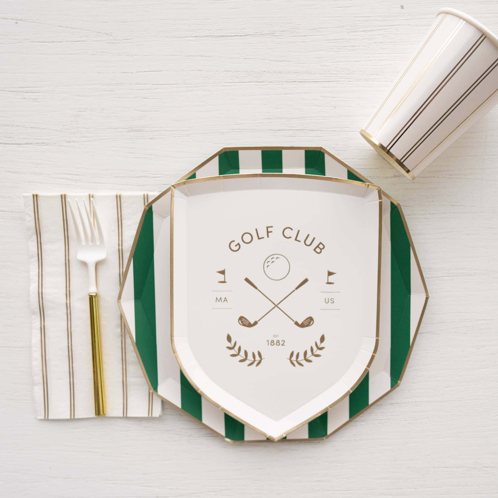 Introducing the Golf Crest small plates, a delightful creation by Bonjour Fête. This incredible package consists of 8 plates, each with a diameter of 7 inches, perfect for serving small delicacies or appetizers. Crafted from FSC certified paper, these eco-conscious materials ensure a sustainable and environmentally friendly choice. Perfect for golf themed baby showers, hole in one birthday parties, or Father's Day.