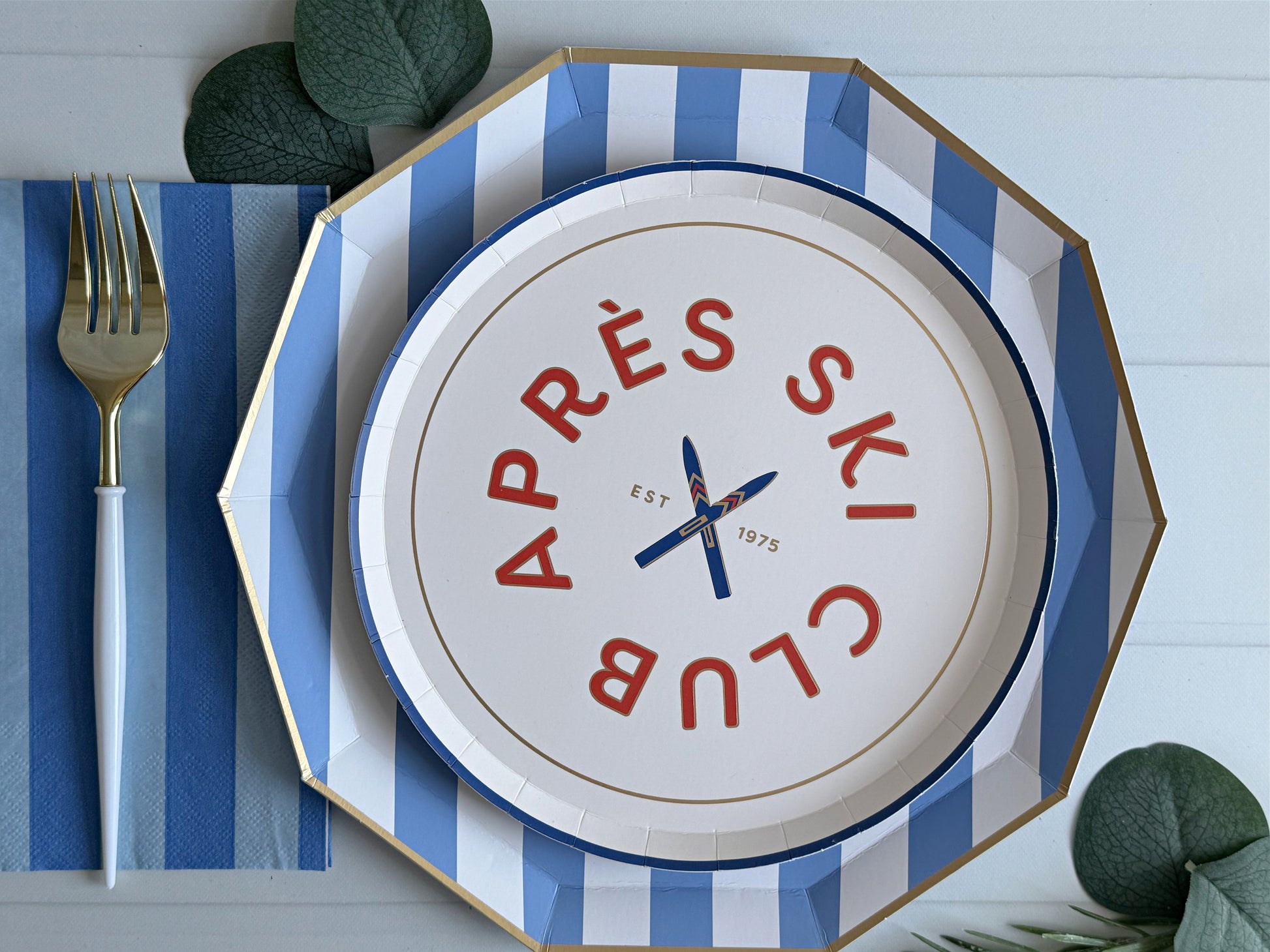 The sophisticated light and dark blue cabana stripe pattern adds a touch of French elegance to any table setting. Made from high-quality, environmentally responsible FSC-certified paper with premium soy-based inks, these disposable napkins offer the perfect balance of style, durability, and eco-consciousness.