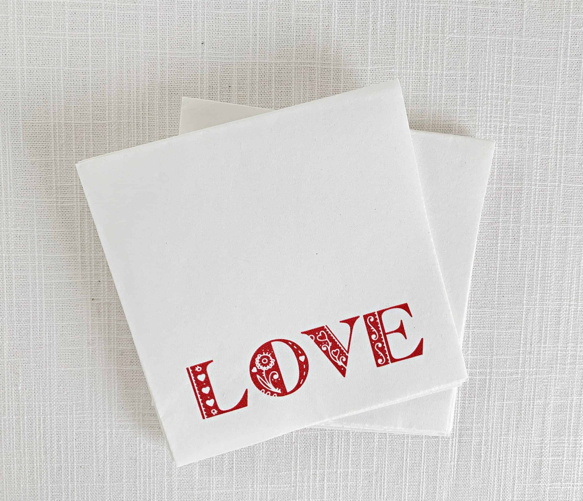 Sweet hugging hearts say "be mine" on these EnFete original cocktail napkins. White background with blush heart and black writing. Perfect for a Valentine treat, a Galentine's day cocktail, or under an afternoon snack.