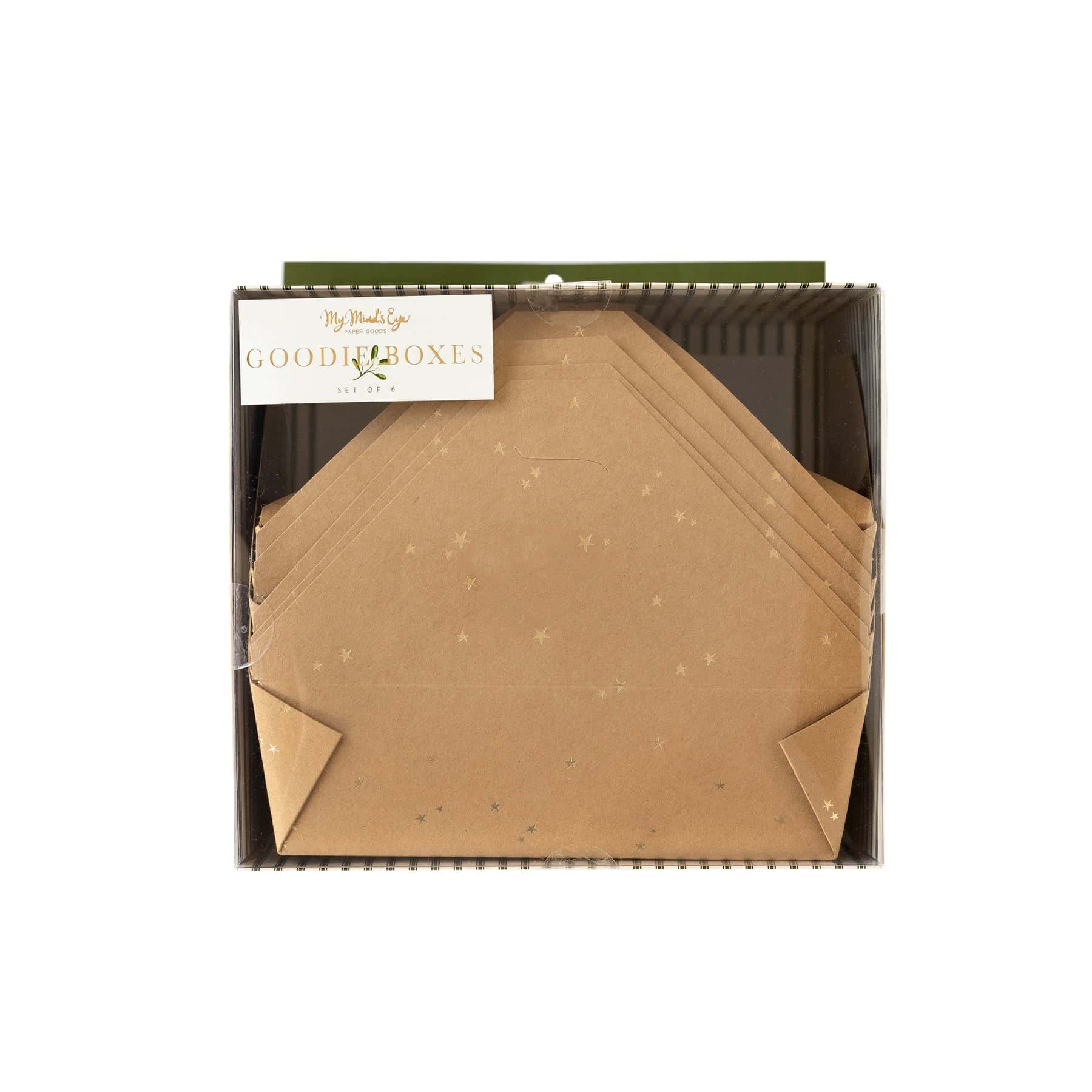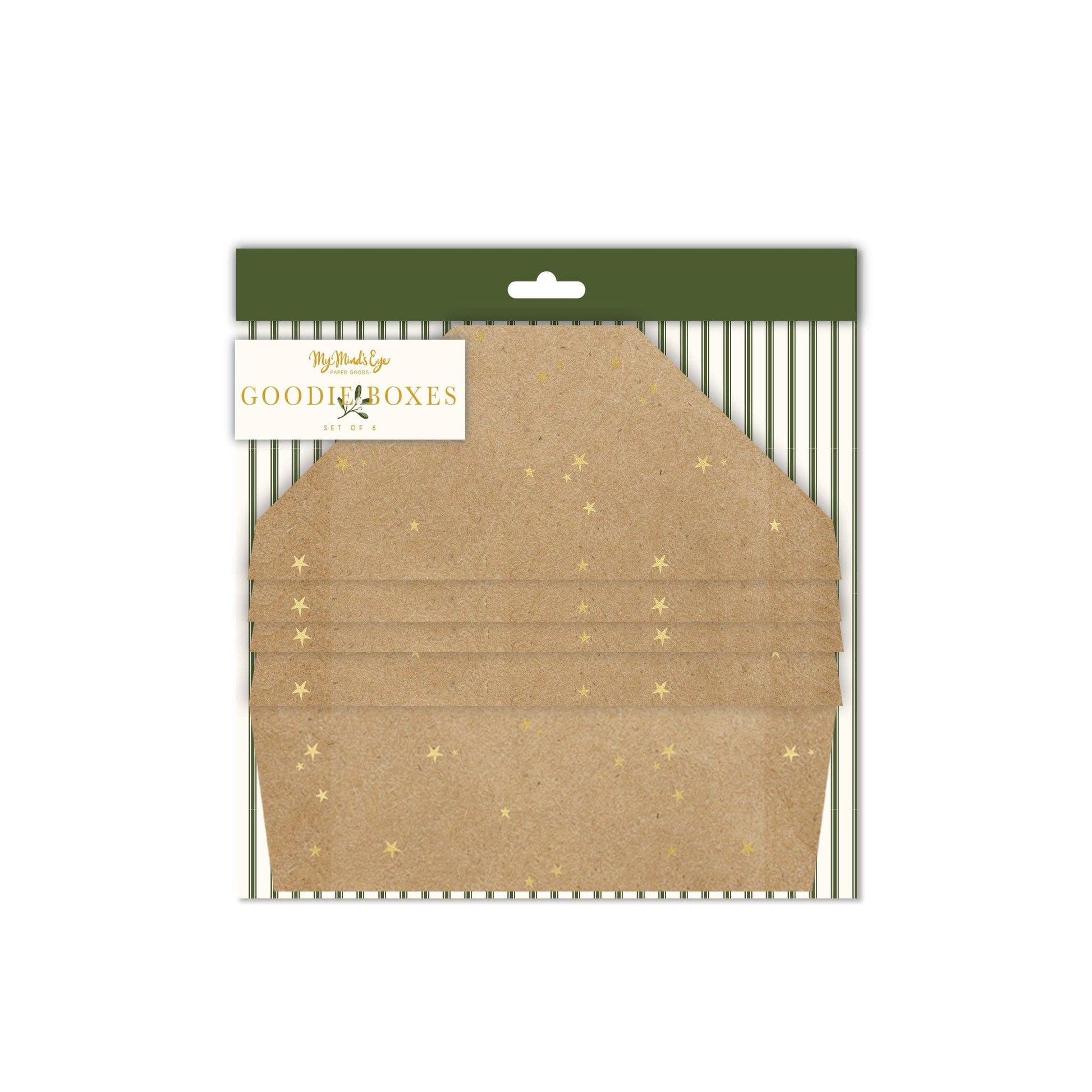 Crafted from brown kraft and adorned with sparkly gold foil stars, these boxes are as stylish as they are festive.
