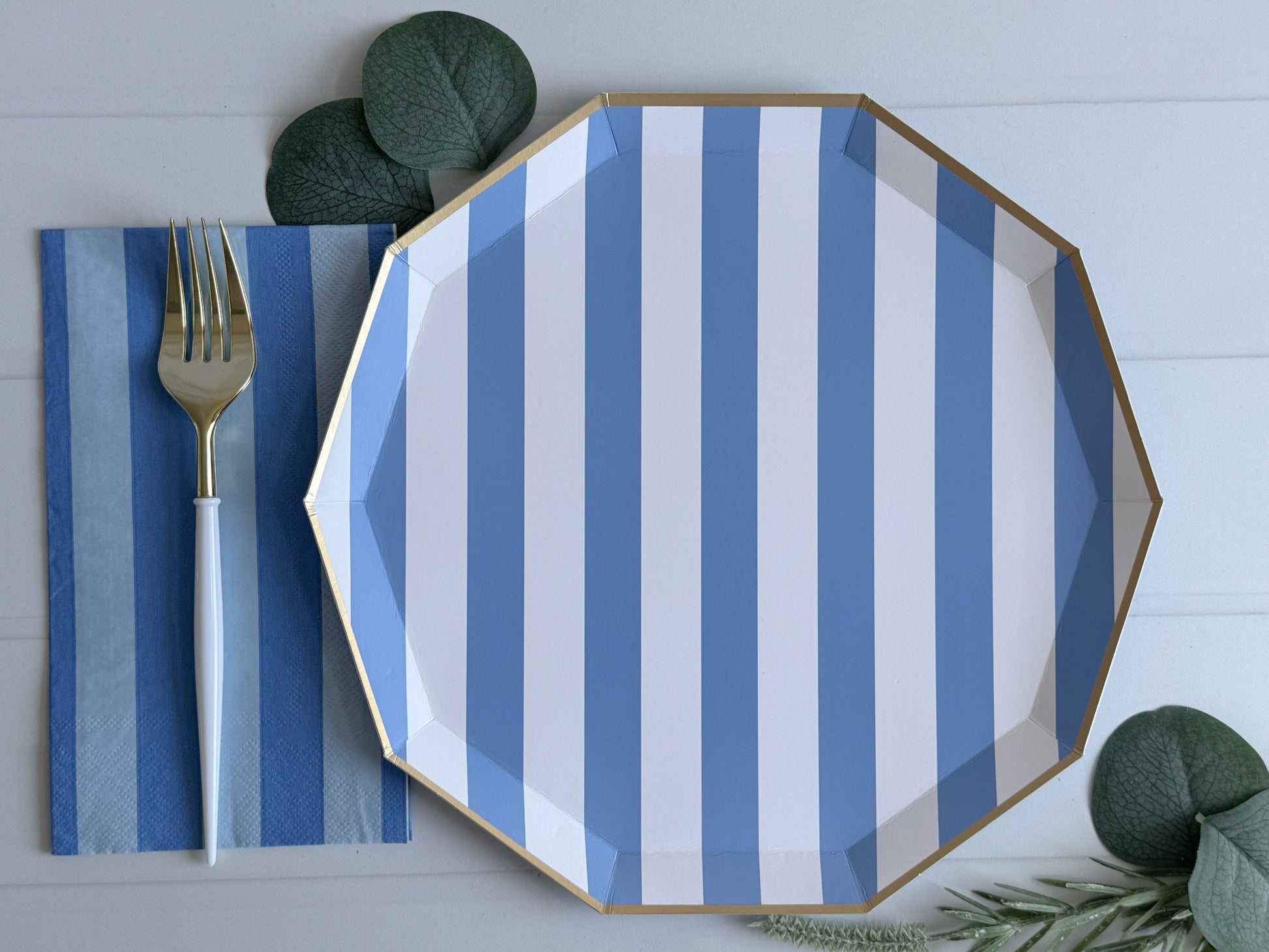 Elevate your celebration with these stunning Periwinkle blue cabana stripe plates that bring sophisticated nautical charm to any gathering. These premium plates coordinate beautifully with our après ski collection and complement multiple party themes.