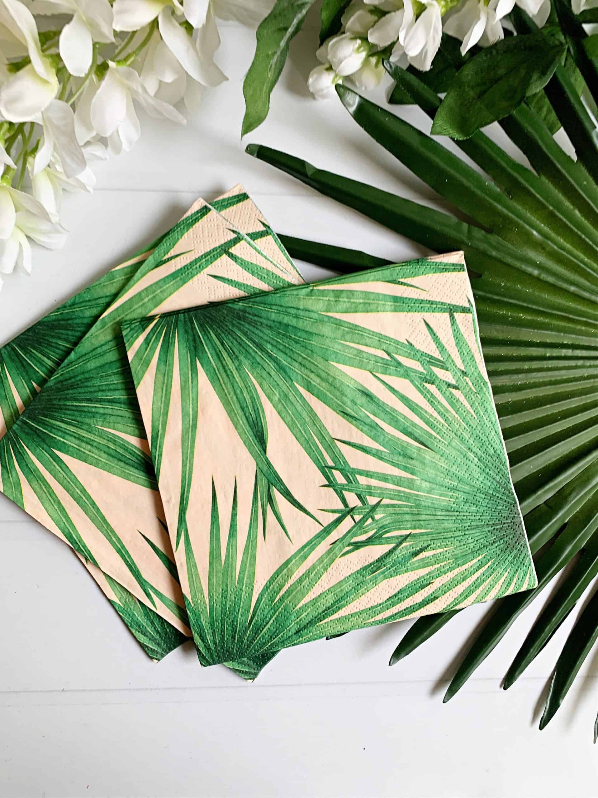 Make your party table special with these palms on a soft blush luncheon napkins. Mix and match with our summer paper plates and they would definitely make a bright, tropical addition to your party tables!
