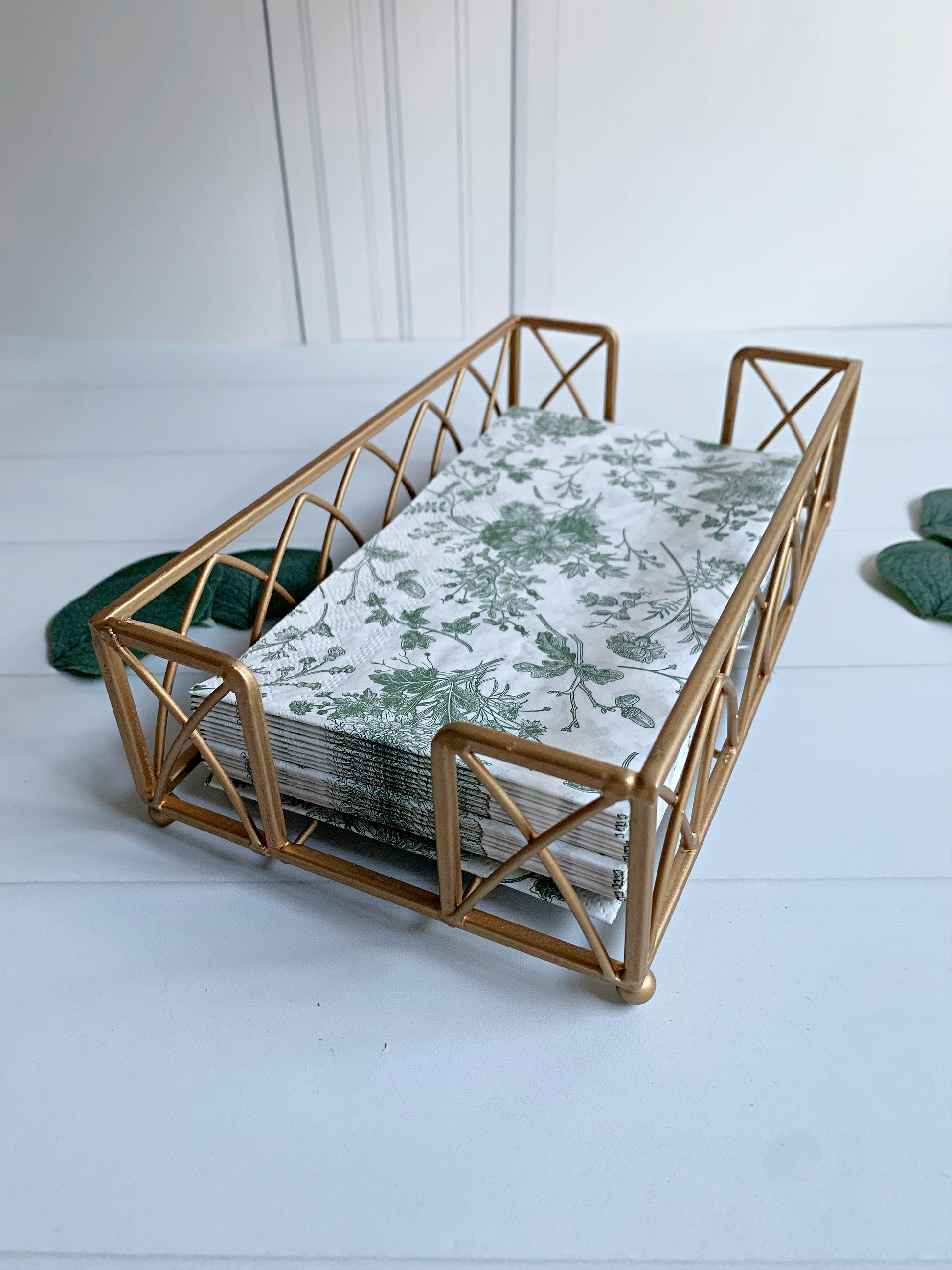 Elevate your holiday entertaining with this stunning arch matte gold dinner napkin caddy. The sophisticated arched design and luxurious matte gold finish create an elegant display for guest towels and dinner napkins, perfect for Christmas dinners, holiday parties, and festive celebrations throughout the season.