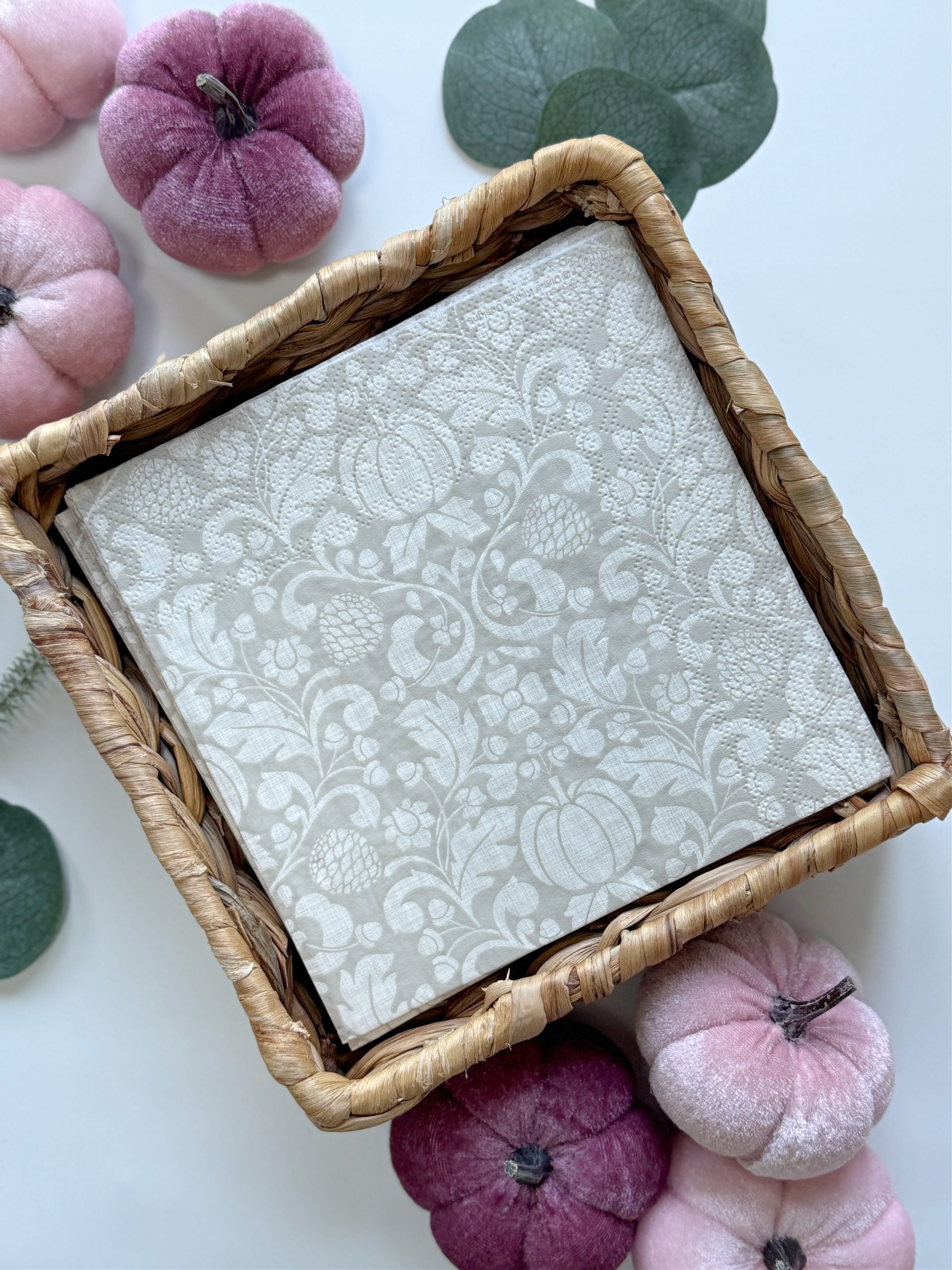 Fold and place at each guest's setting for an elegant touch, display in napkin rings with fall foliage accents, or arrange on your buffet table alongside seasonal serving pieces. The neutral tones pair beautifully with gold flatware, natural wood chargers, and both traditional and modern fall color palettes.