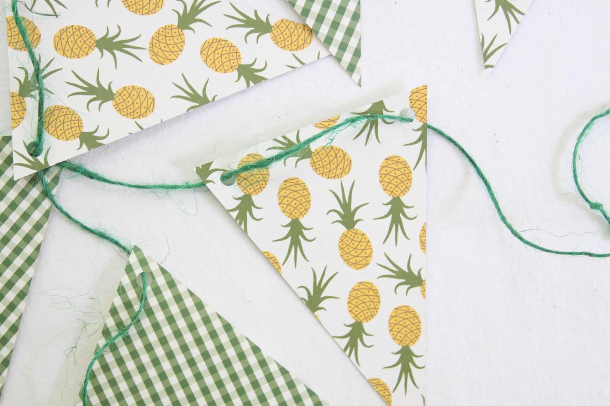 Each pineapple bunting has 8 flags that are approximately 5 inches long, and strung on a green twine cord.