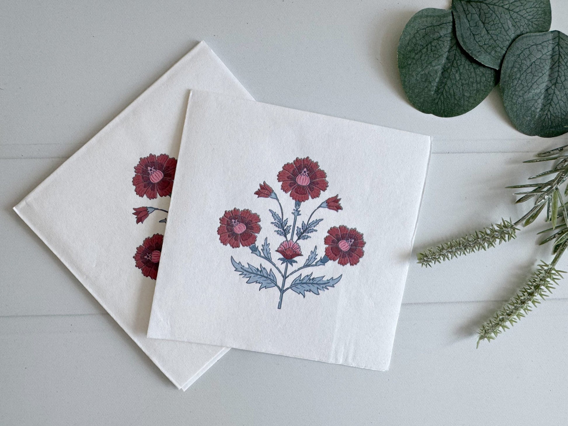 Add a touch of artisanal elegance to your celebration with these stunning floral block print cocktail napkins.