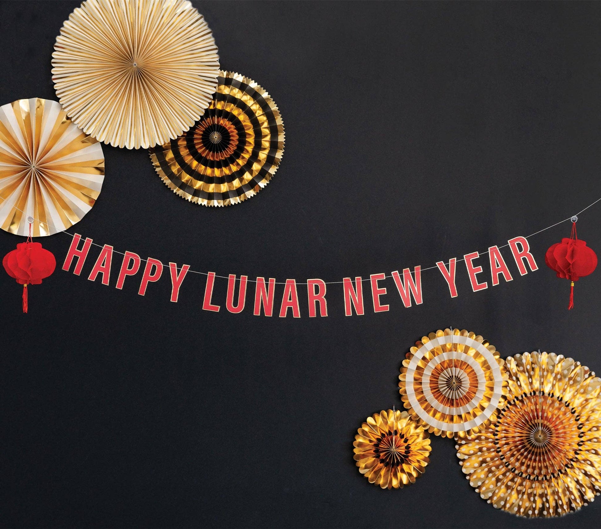 The "HAPPY LUNAR NEW YEAR" banner is approximately 4.5 feet long, creating a striking visual impact at your celebration.