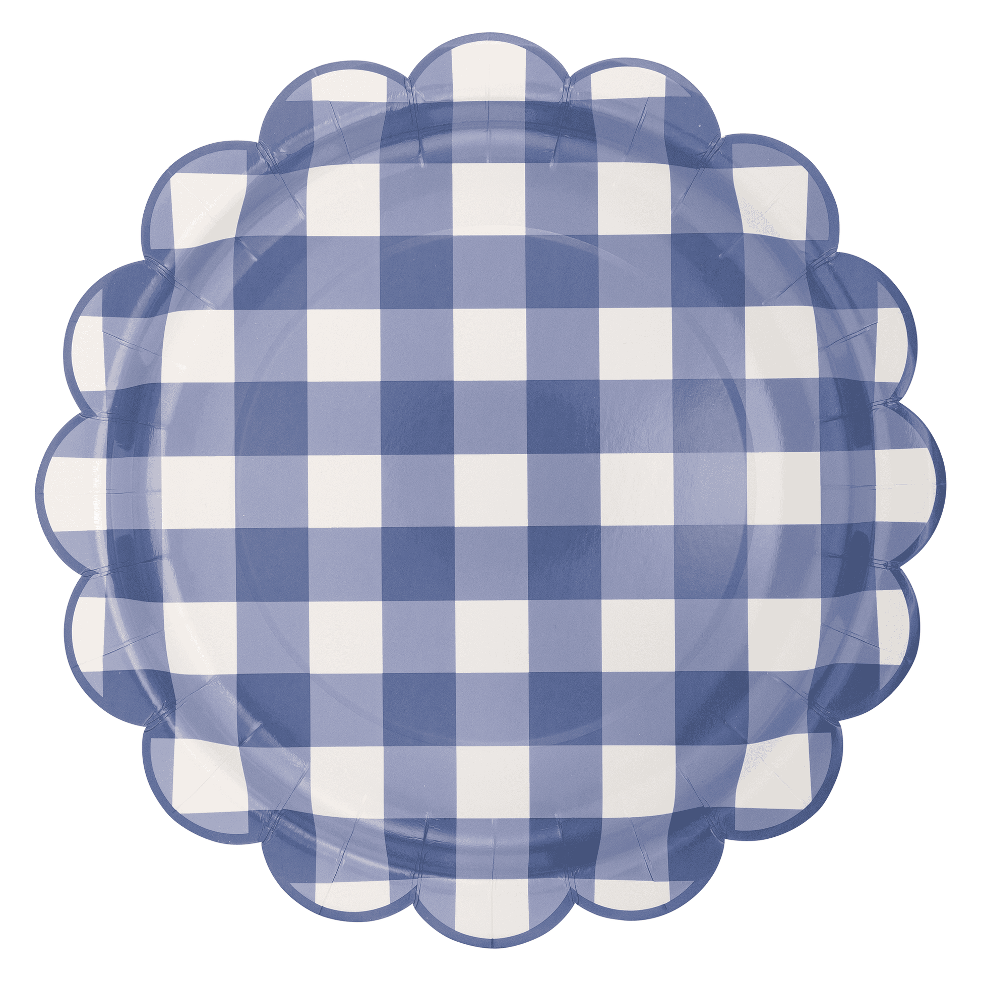 Classic blue gingham design adds a touch of Americana and summer vibes