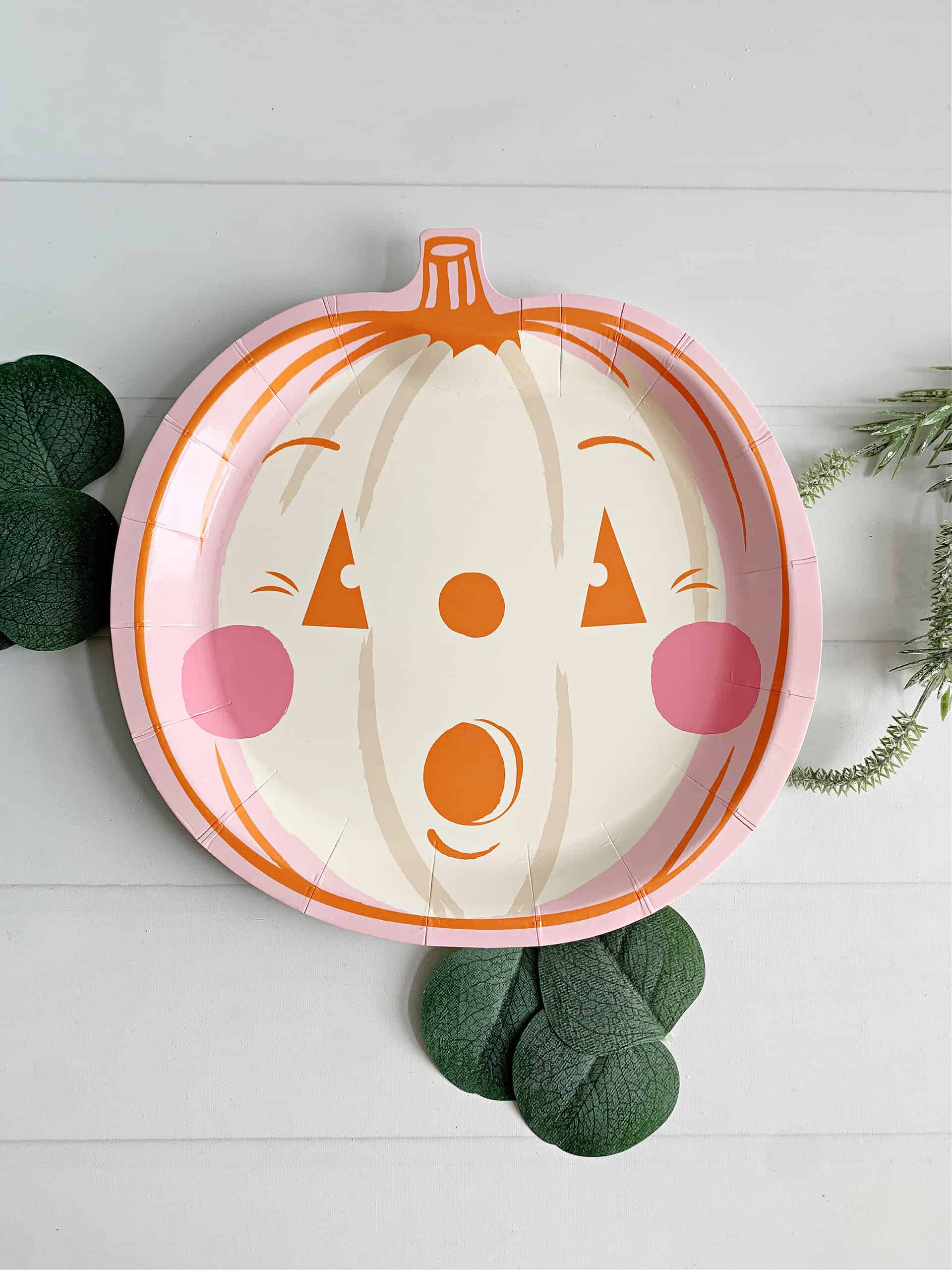 Vintage Pumpkin Face Paper Plates - Hot Pink & Orange
