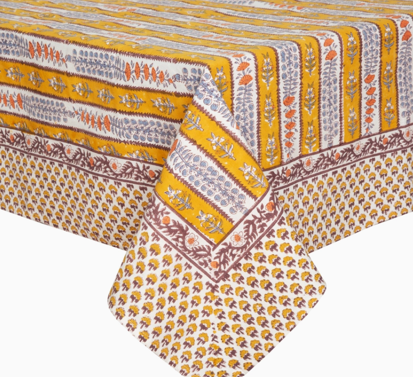 Provence Avignon Dijon & Blue Tablecloth 70x128 - French Country Botanical Print