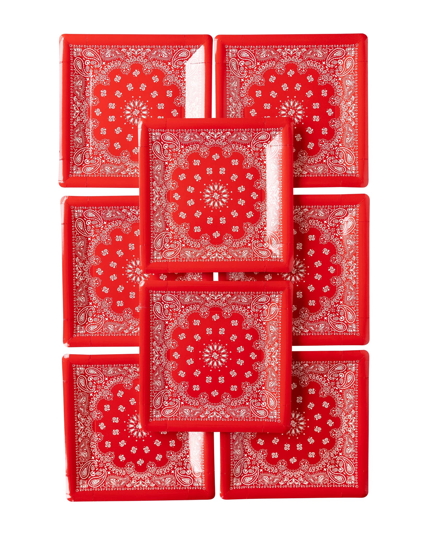 Complete your Western-inspired table setting with our Red Bandana Paper Plates. This set includes 8 square paper plates, each measuring 9 inches tall and 9 inches wide, making them the perfect choice for adding a touch of cowboy flair to your meals.