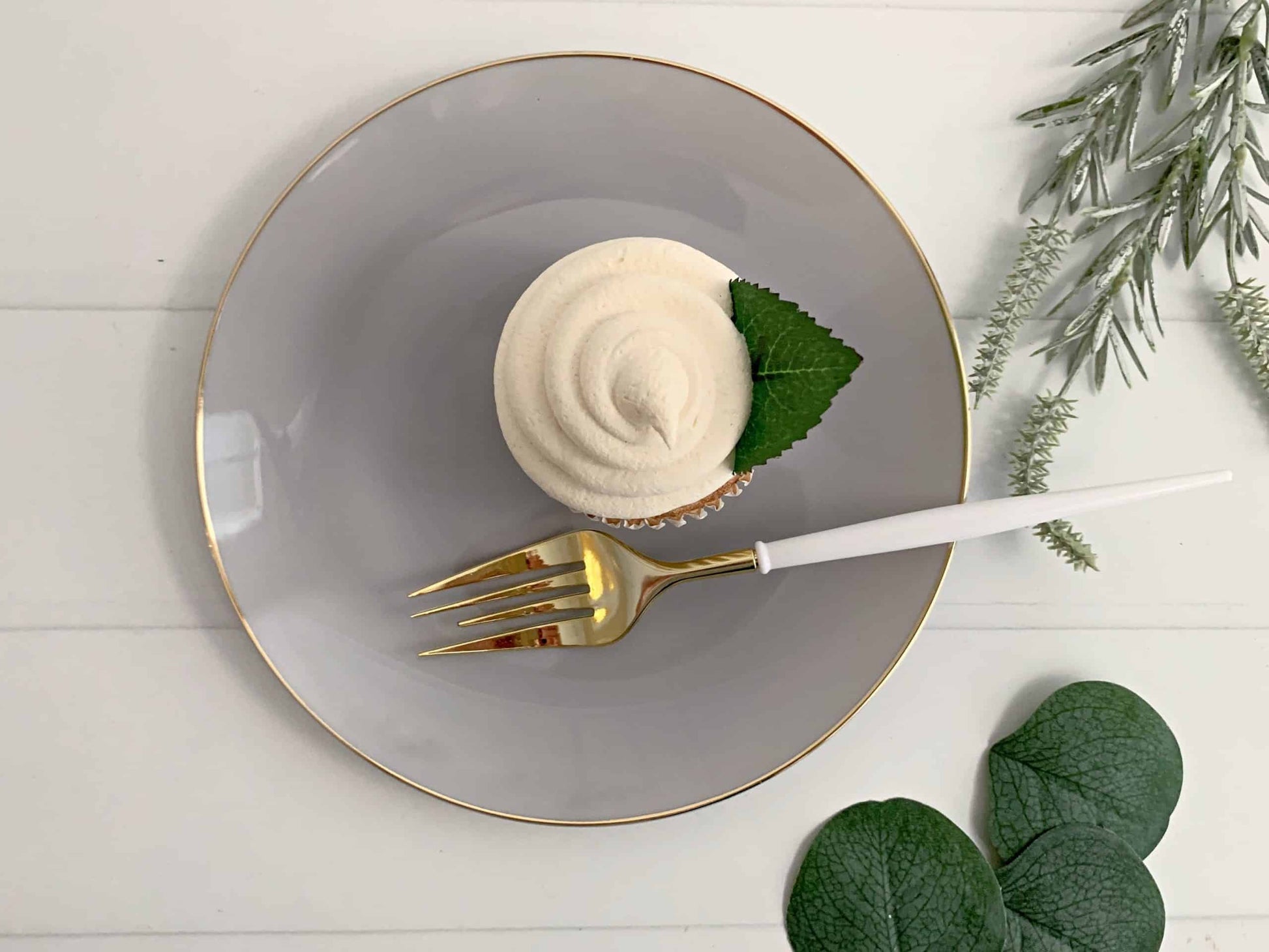 Celebrate dessert in style with our grey with and gold-edged dessert plates. They are the perfect size for cake or dessert.