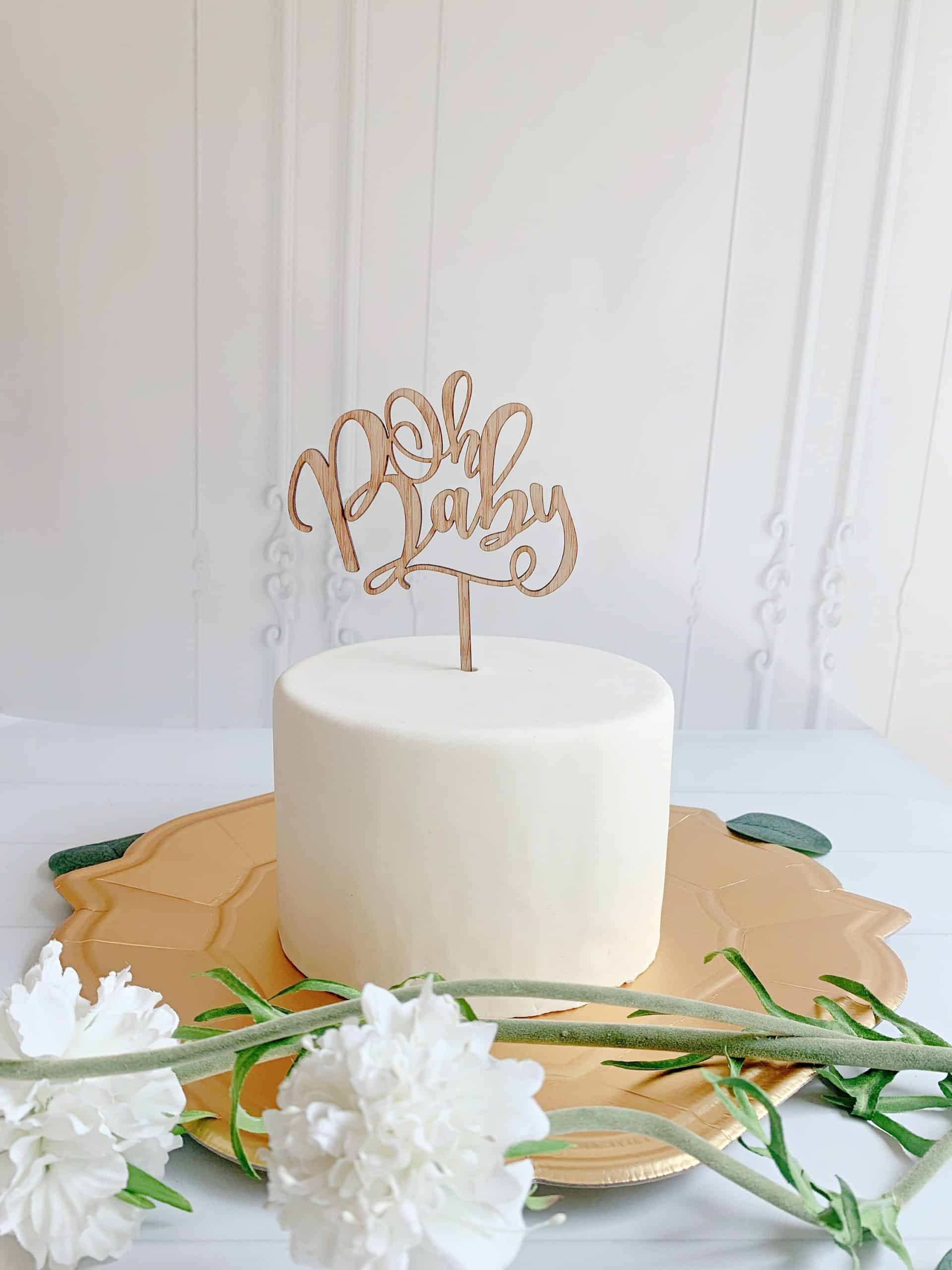 Pop this stunning wooden 'Oh Baby' cake topper into delicious cakes and treats - an easy and effective way of creating a beautiful dessert table. Perfect for a rustic baby shower.