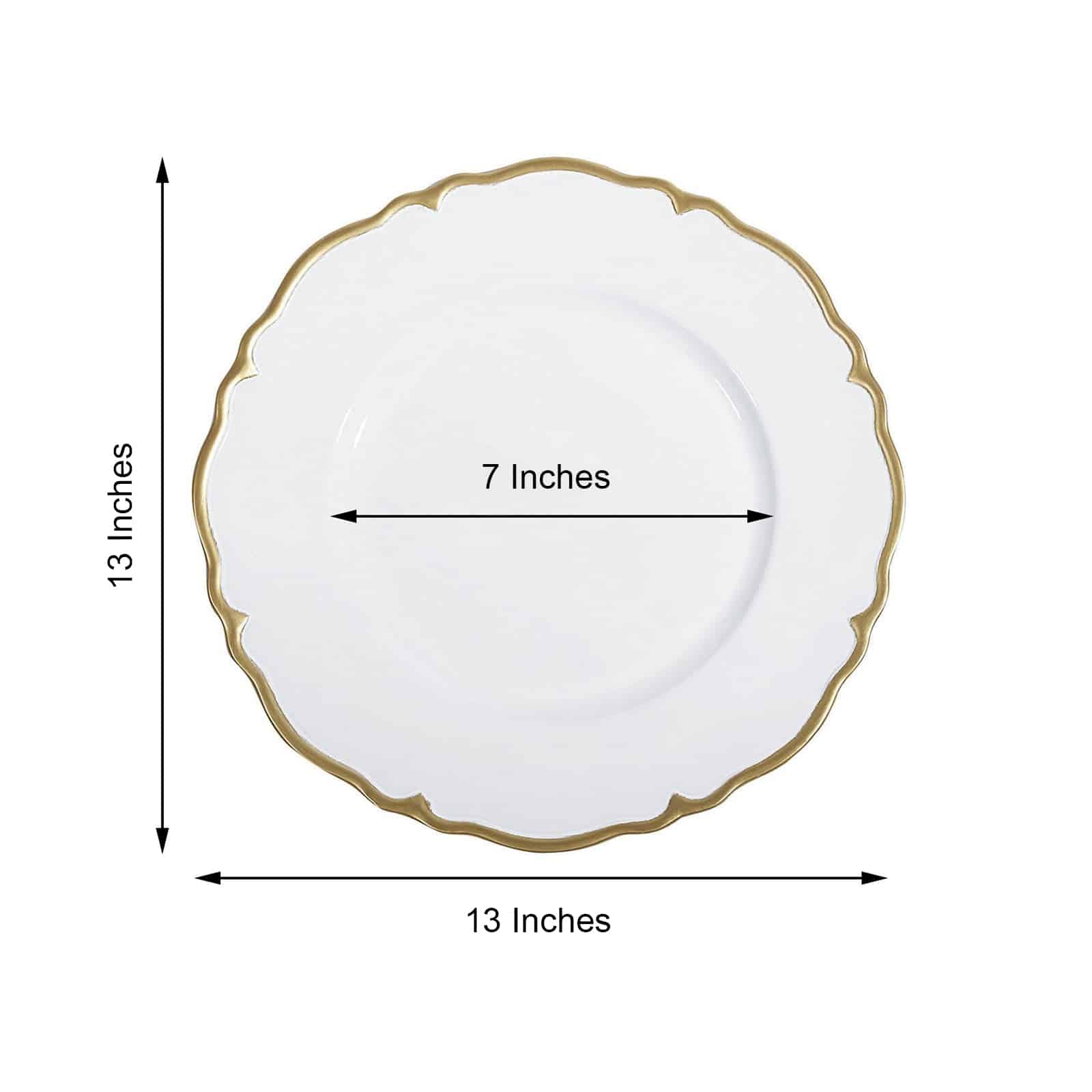 Use this soft white with a gold edge charger plate for your next holiday or event. They are the perfect way to use our paper dinner plates at a buffet!