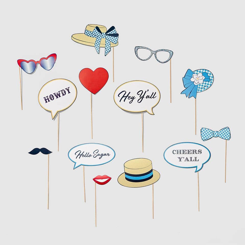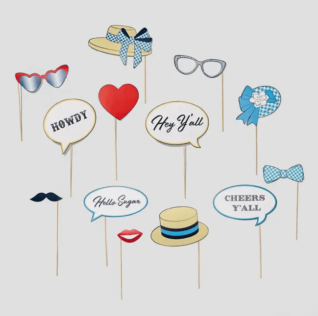 Capture the spirit of the Kentucky Derby with this set of 13 themed photo props. Featuring shades of red, navy, and blue, this set is perfect for your Kentucky Derby party or bridal shower. The heavy cardstock props are mounted on wooden sticks for easy holding, and the southern charm design is sure to add a touch of fun to your event. Capture animated pics of your guests and create lasting memories with this delightful set of photo props.