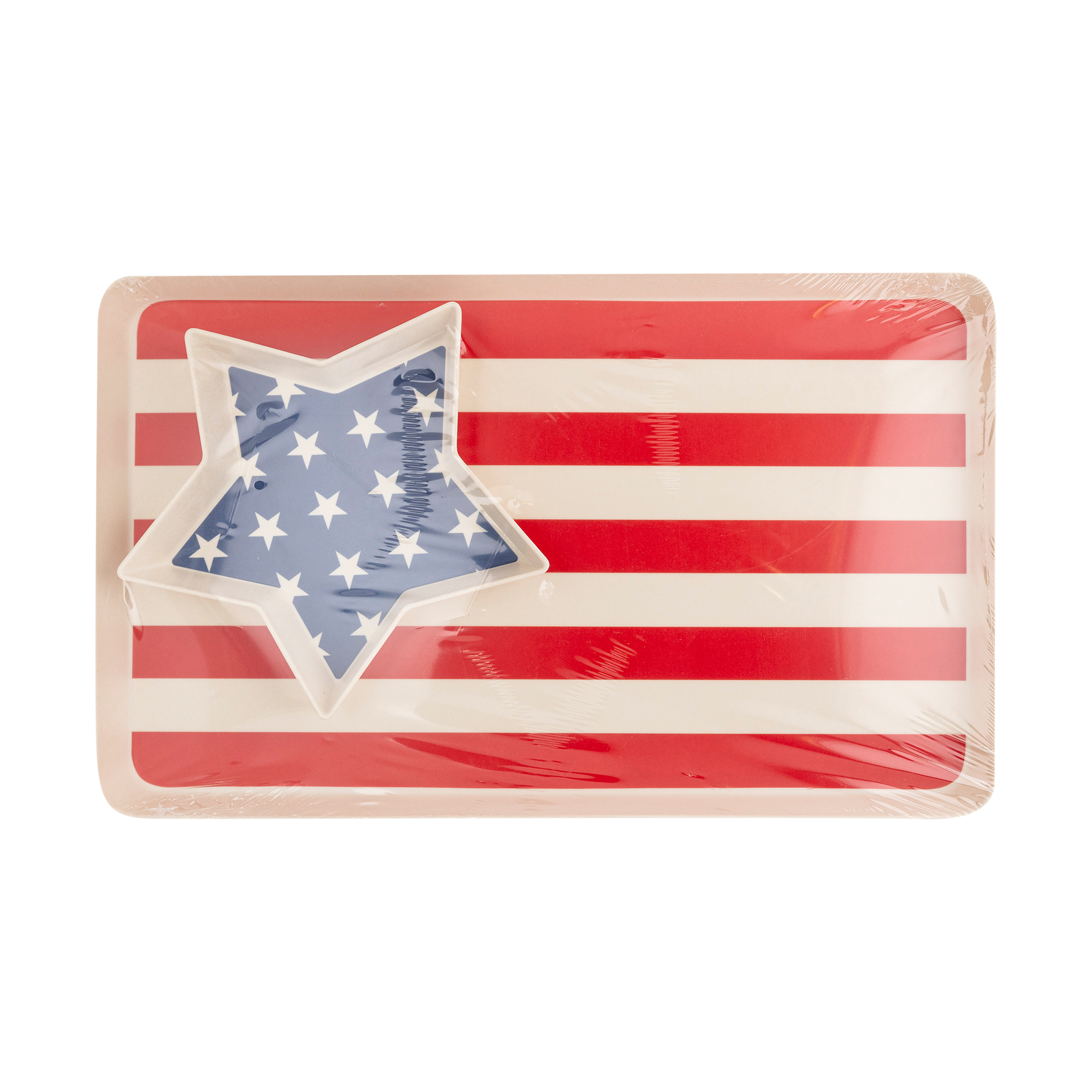 Grab your American Flag Stacked Reusable Bamboo Serving Tray Set today and showcase your love for the USA while enjoying convenient and stylish serving options.
