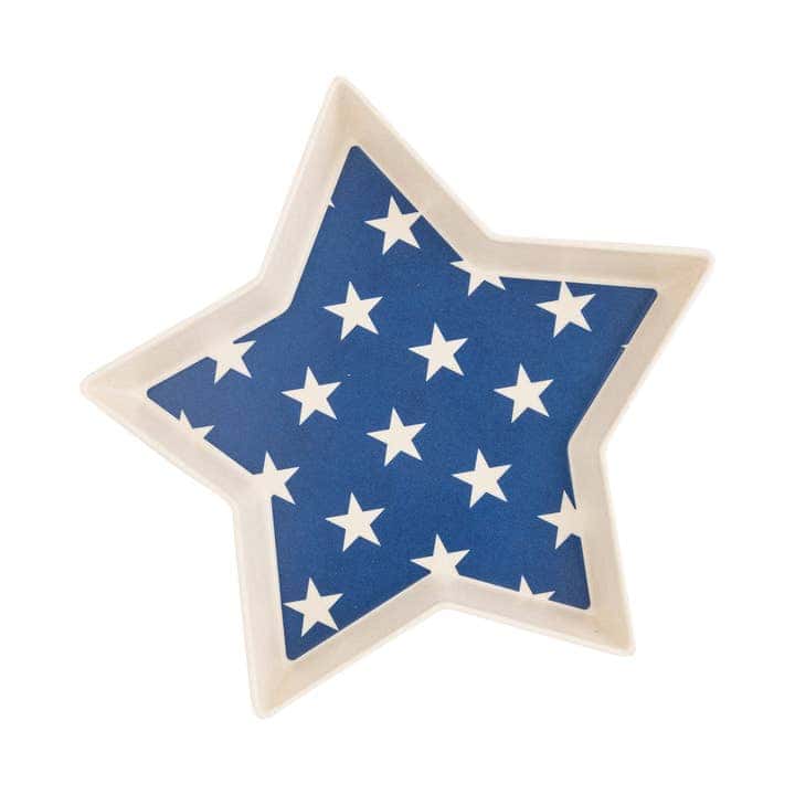• includes 2 bamboo trays - larger striped tray, smaller star tray/bow