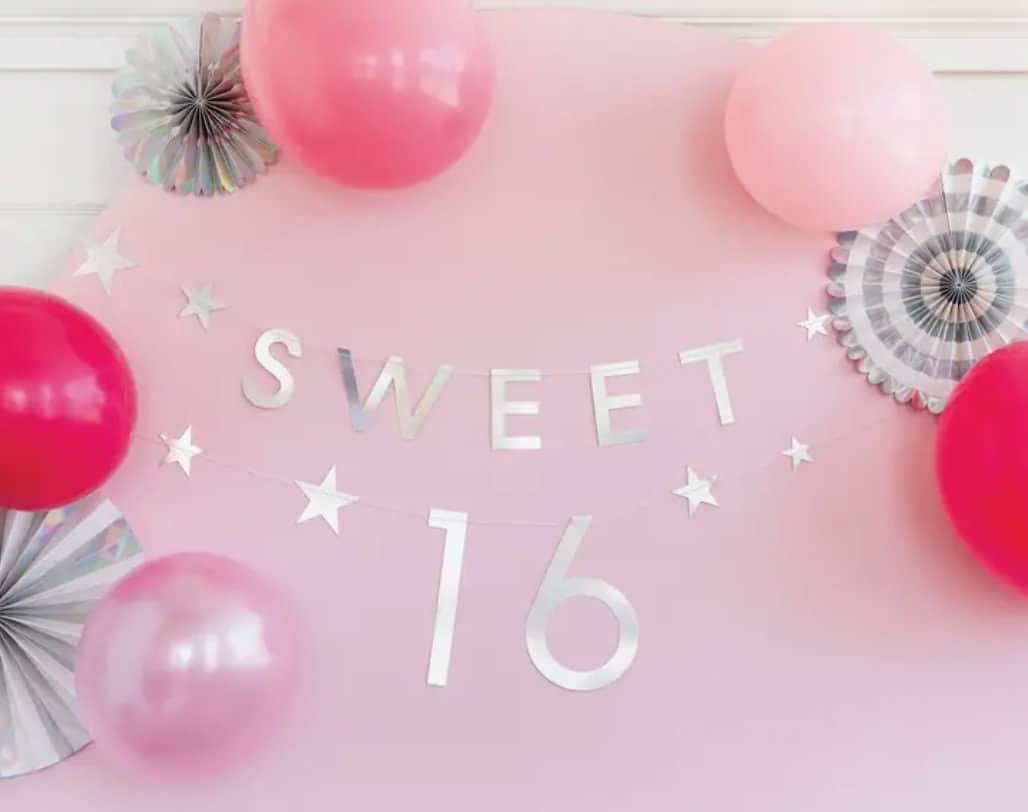 Whether you are planning a super sweet sixteen or just want to mark the milestone of your loved one turning sixteen, these iridescent foil banner is the perfect decoration! This word banner features the phrase "sweet 16" and die-cut stars and is sure to make any sixteenth birthday a dazzling affair.