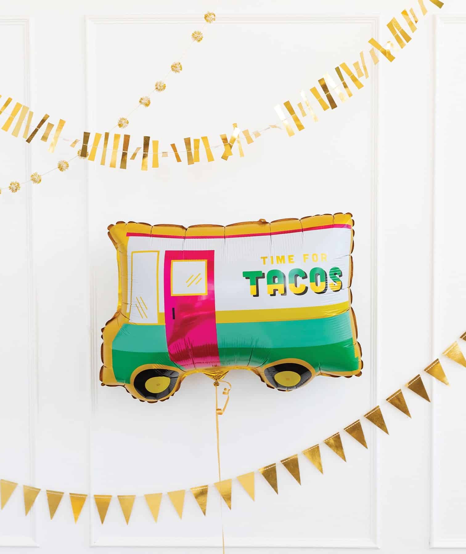 Bring some fun to your next fiesta with our Taco Truck Shaped Mylar Balloon. Perfect for birthday parties, bachelorette parties, weddings, and more! Celebrate your next fiesta in style with our Taco Truck Shaped Mylar Balloon! This bright and colorful balloon is perfect for a fiesta-themed birthday party, bachelorette party, wedding taco bar, or any other spring and summer event. Measuring 24" X 17", this balloon is shaped like a fun taco truck and is sure to add a fun and festive touch to your celebration.