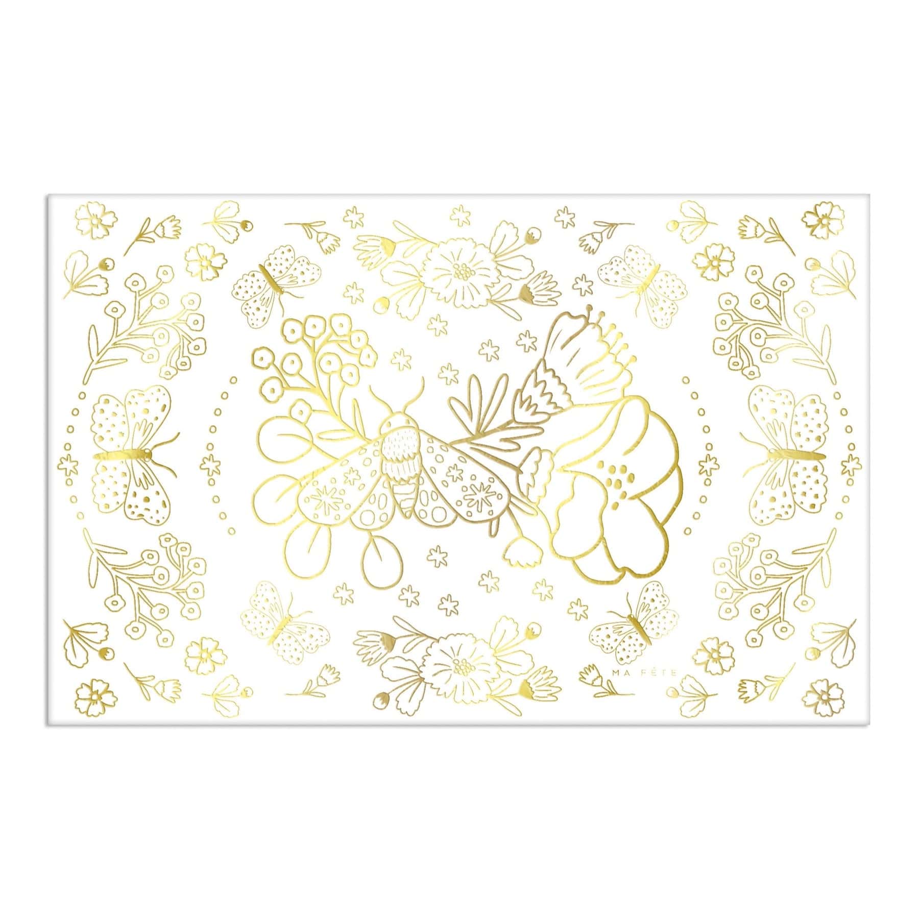 The sheets are outlined with intricate gold foil linework, elevating the beauty of the floral and butterfly design.