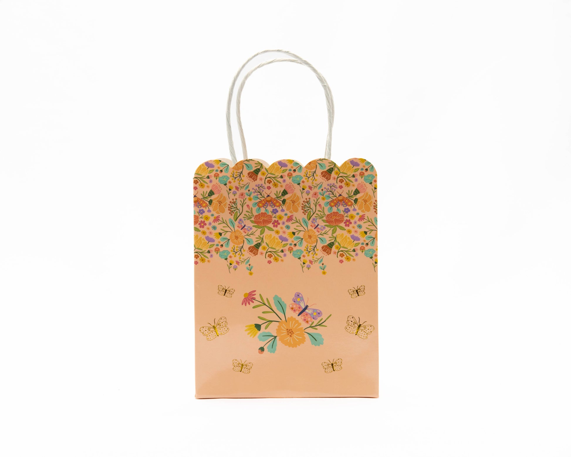 Peach Floral Gift Bags 8 Pack - Tea Party Favor Bags for Bridal Showers & Weddings