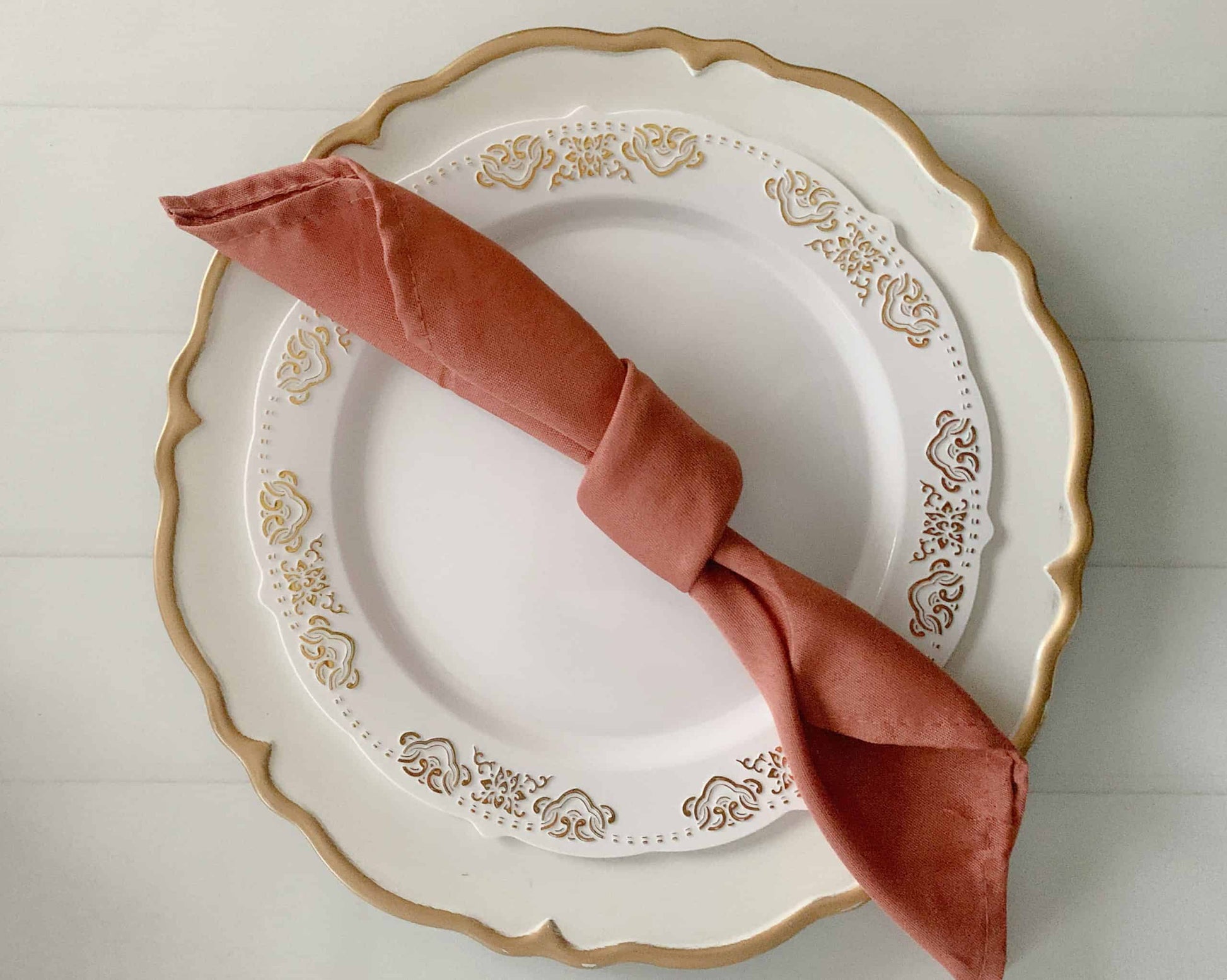 Terracotta dinnner napkins - made of polyester linen fabric. Perfect for bridal showers, wedding or any special occasion you'd like to dress up with cloth napkins.