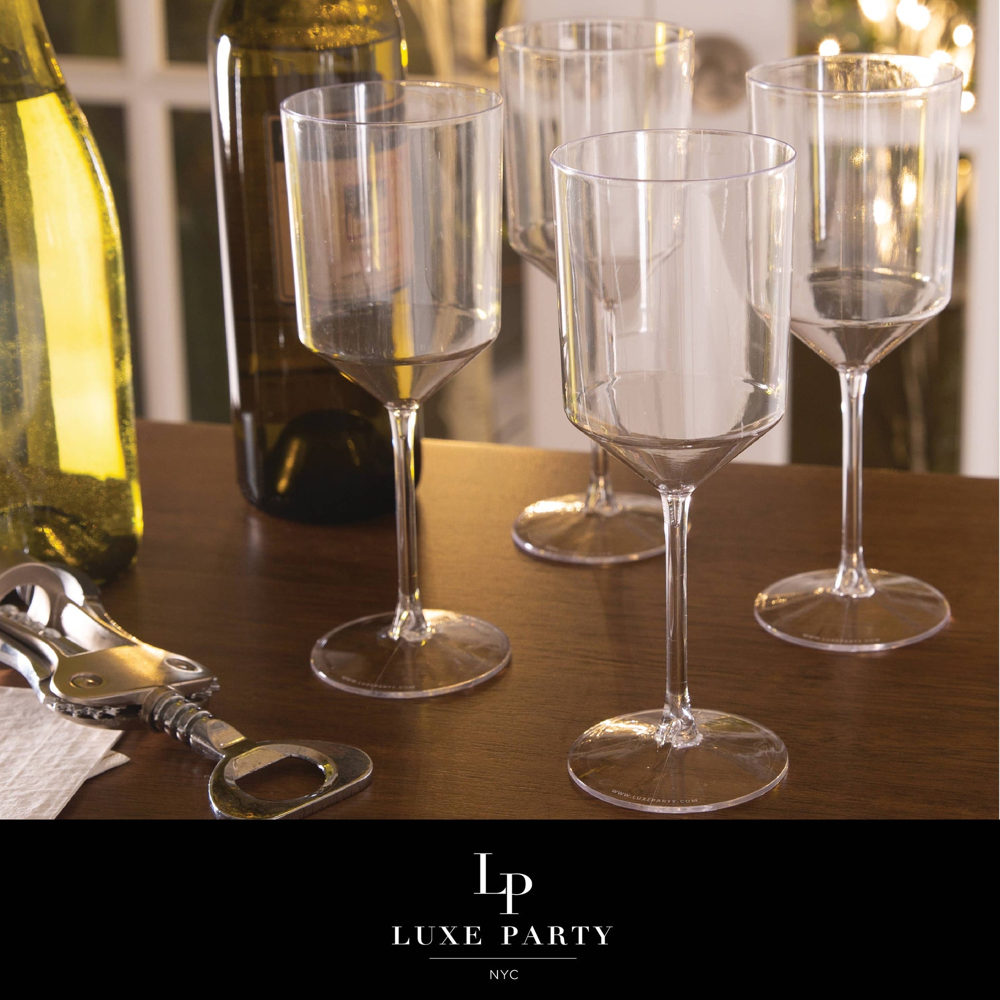 Sleek and so very shapely! With the elegance of upscale glass and the cost-effectiveness of plastic, these crystal clear modern wine glasses are perfect for weddings, mimosa bars, cocktails parties, bridal showers, and even for home use.