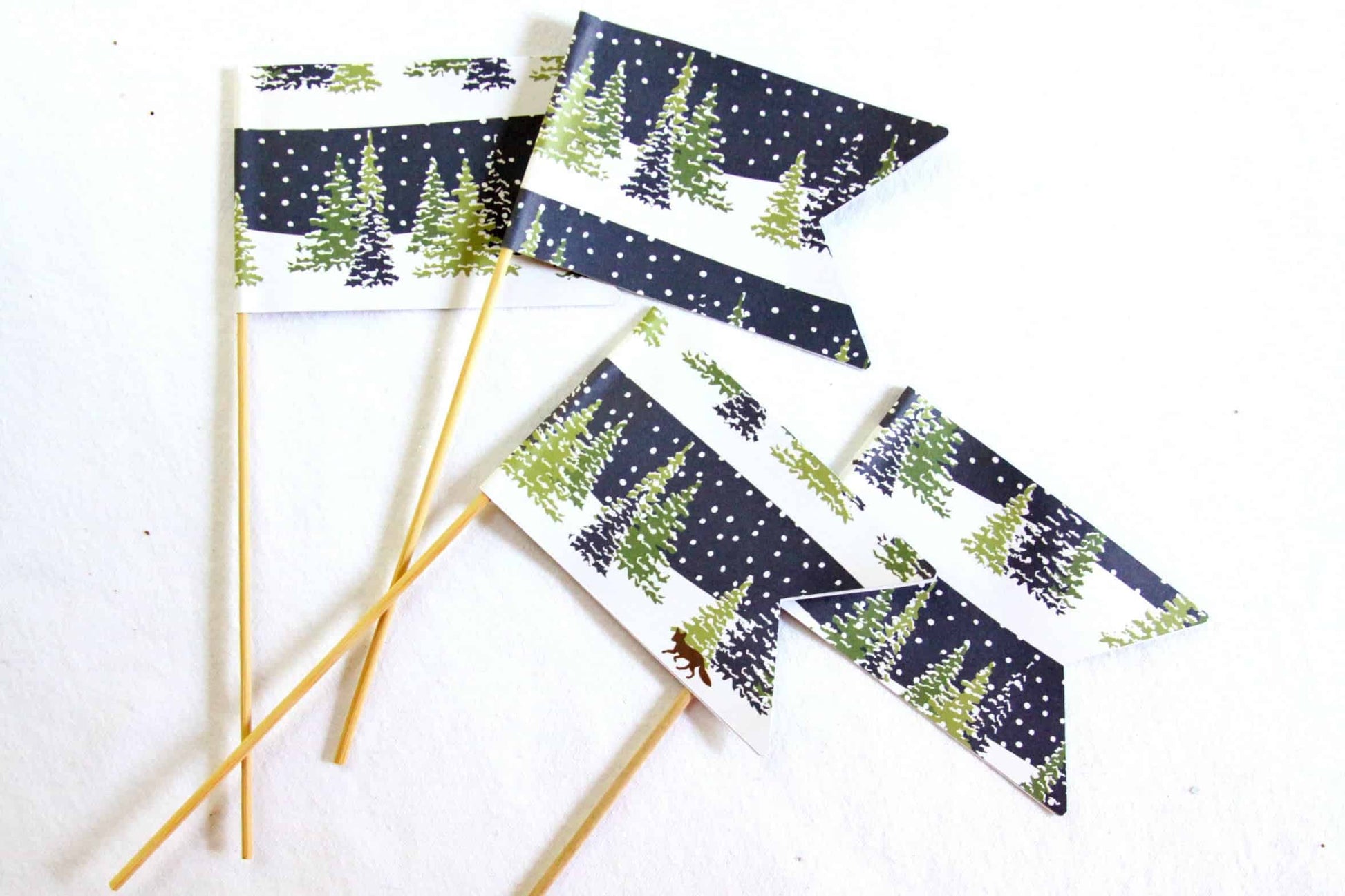 The perfect woodland cake topper! Perfect to match your rustic holiday decor, a lumberjack or woodland birthday or winter baby shower theme perfectly. Each flag is slightly unique because of the variation in the pattern of the pattern, but all are green, white and navy. Perfect as a Christmas cake topper.